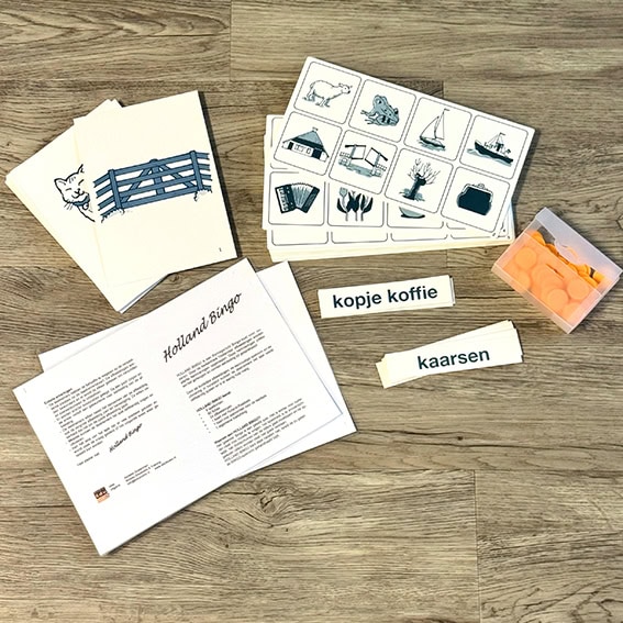 Holland Bingo Plus comes in a case and consists of 8 game boards, 24 cards with simple clear pictures and 90 chips. The ‘Holland’ theme appeals to both older and younger people. The game can also be used to introduce people to typically Dutch things (which is not to say that they do not occur in other countries). The illustrations evoke many associations.