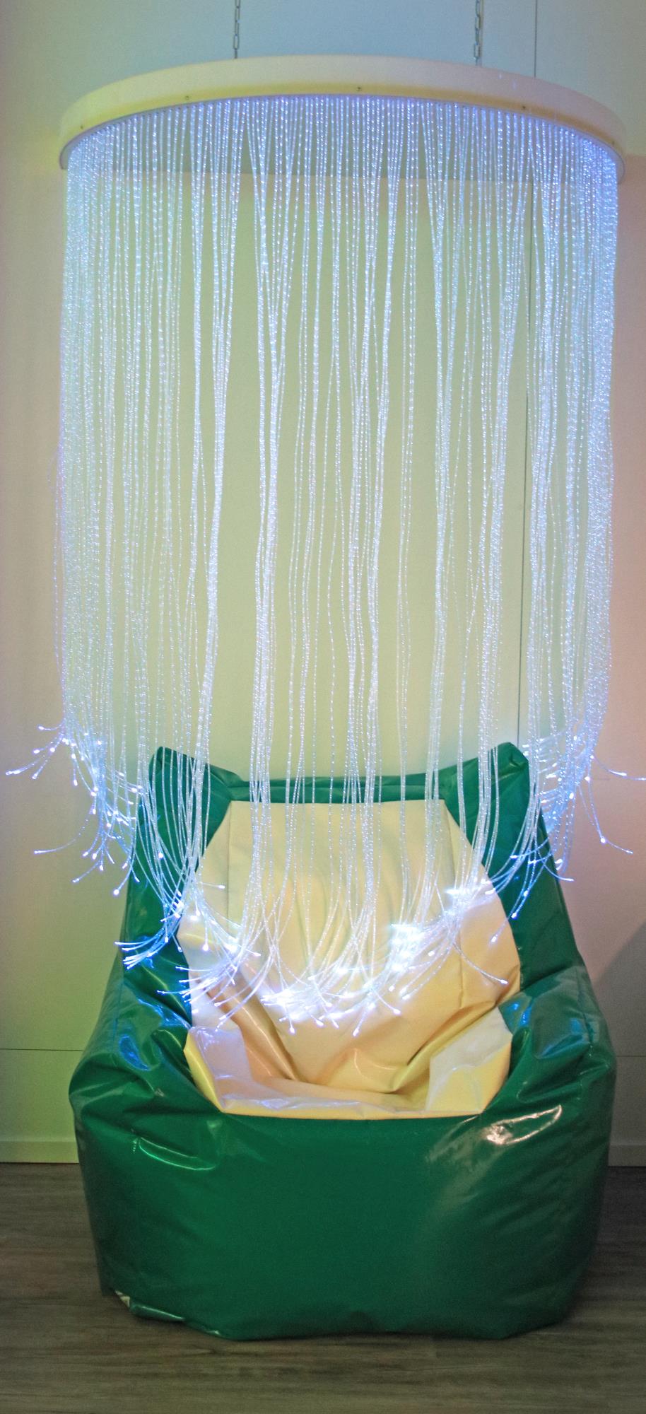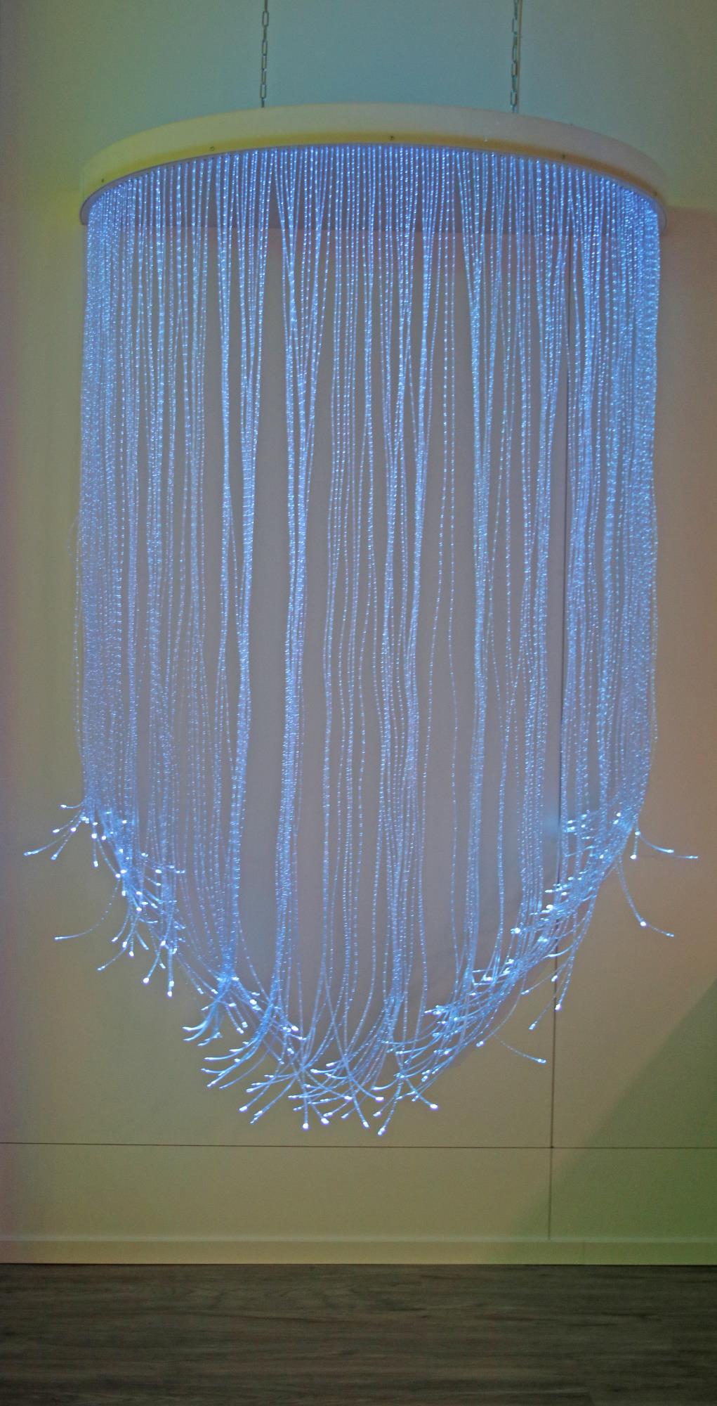 Specially designed to hang the FiberGlow like a waterfall. The light source is mounted on the shelf. Executed in white.