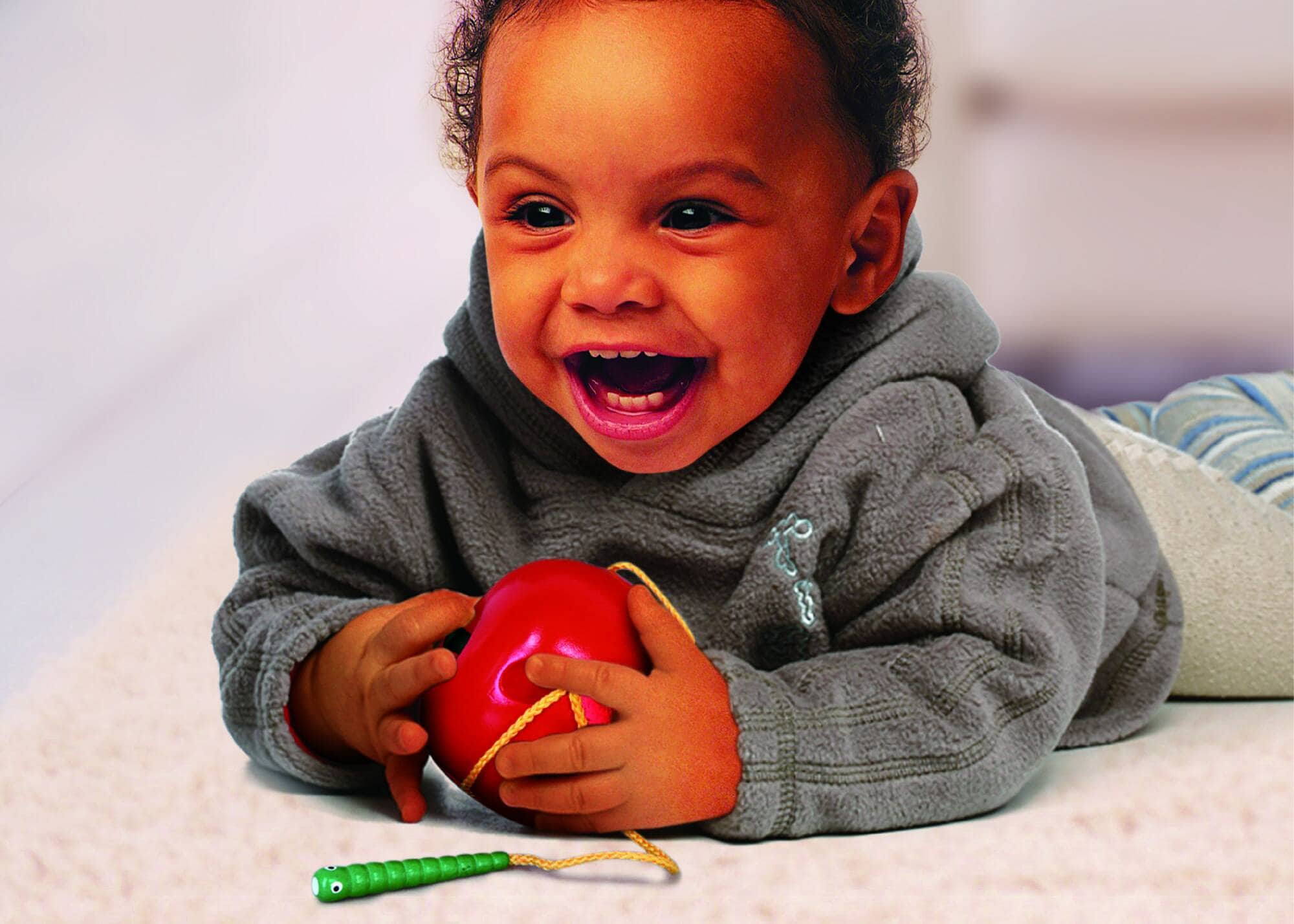 Thread the caterpillar through the apple and try to free it. Size 8 x 8 x 8.7 cm.