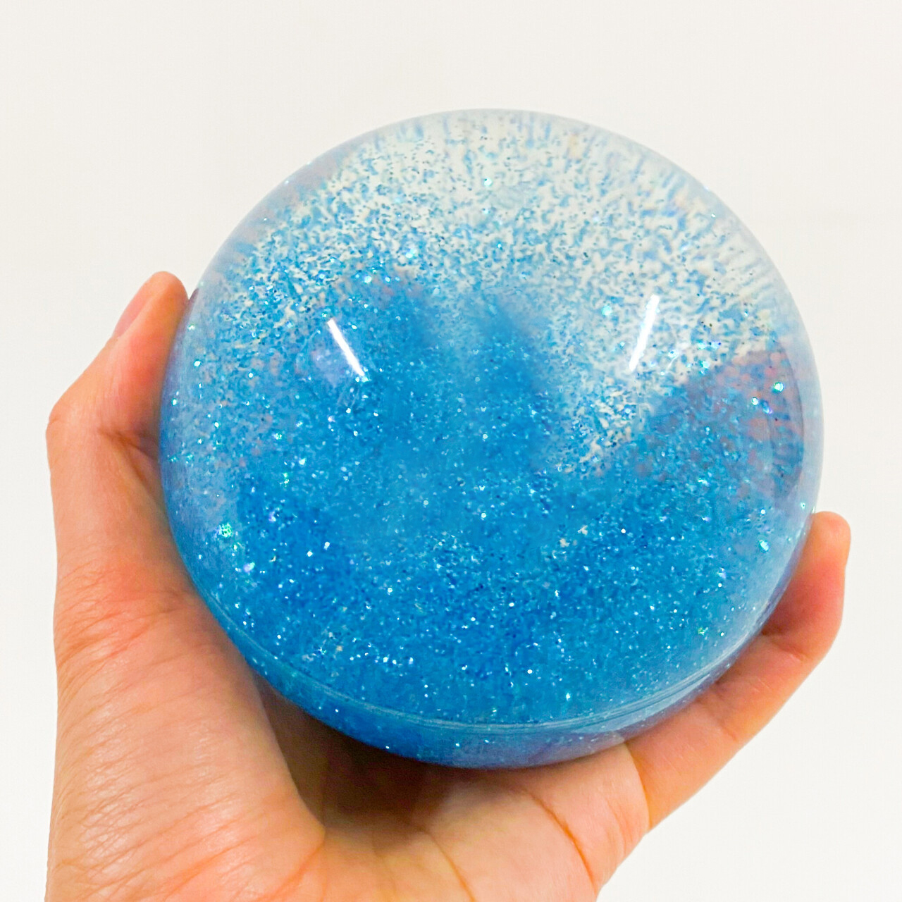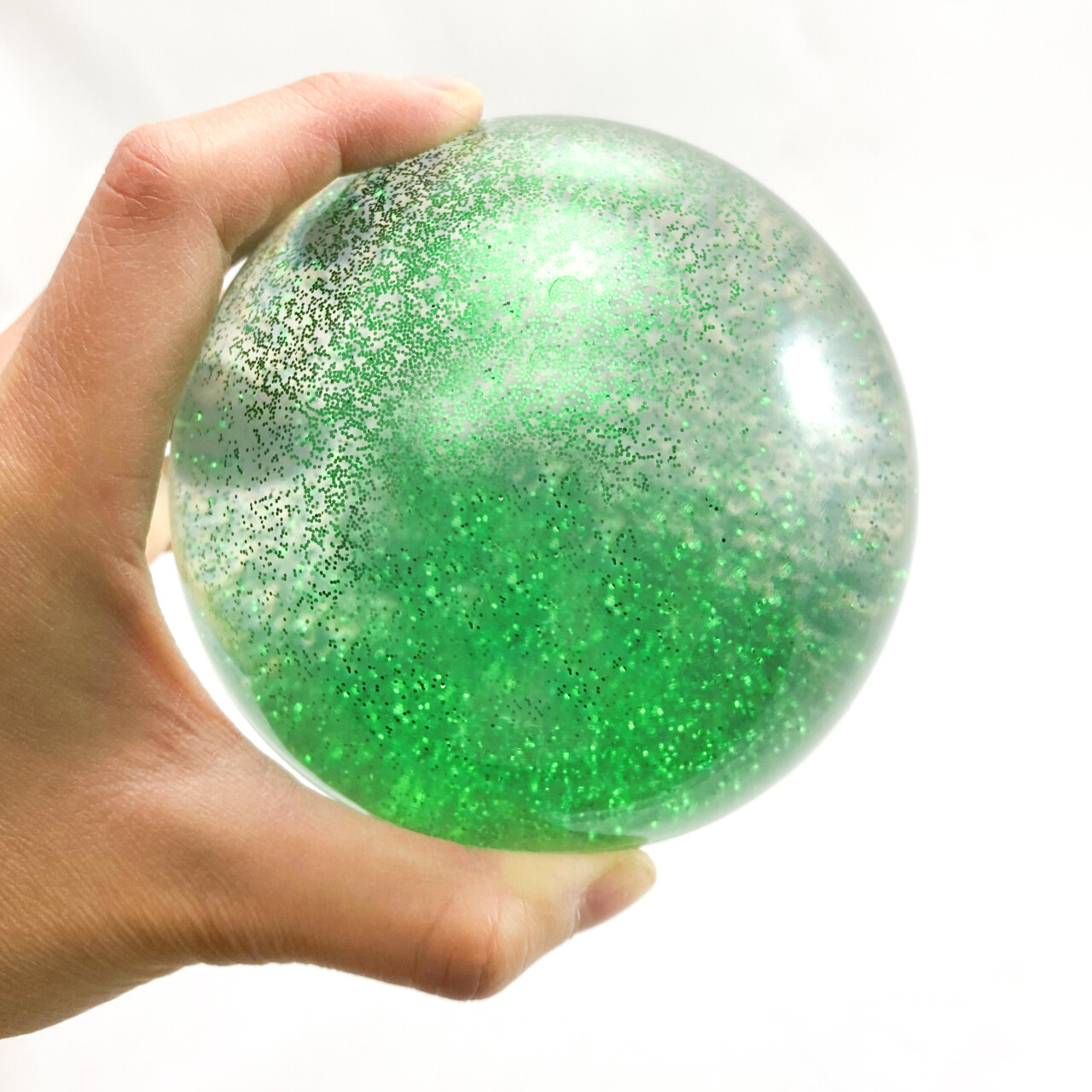 Large bouncing ball with glitter (diameter ø 10 cm). Not only interesting to look at, but also very fun to play with! This ball comes in red, blue or green.