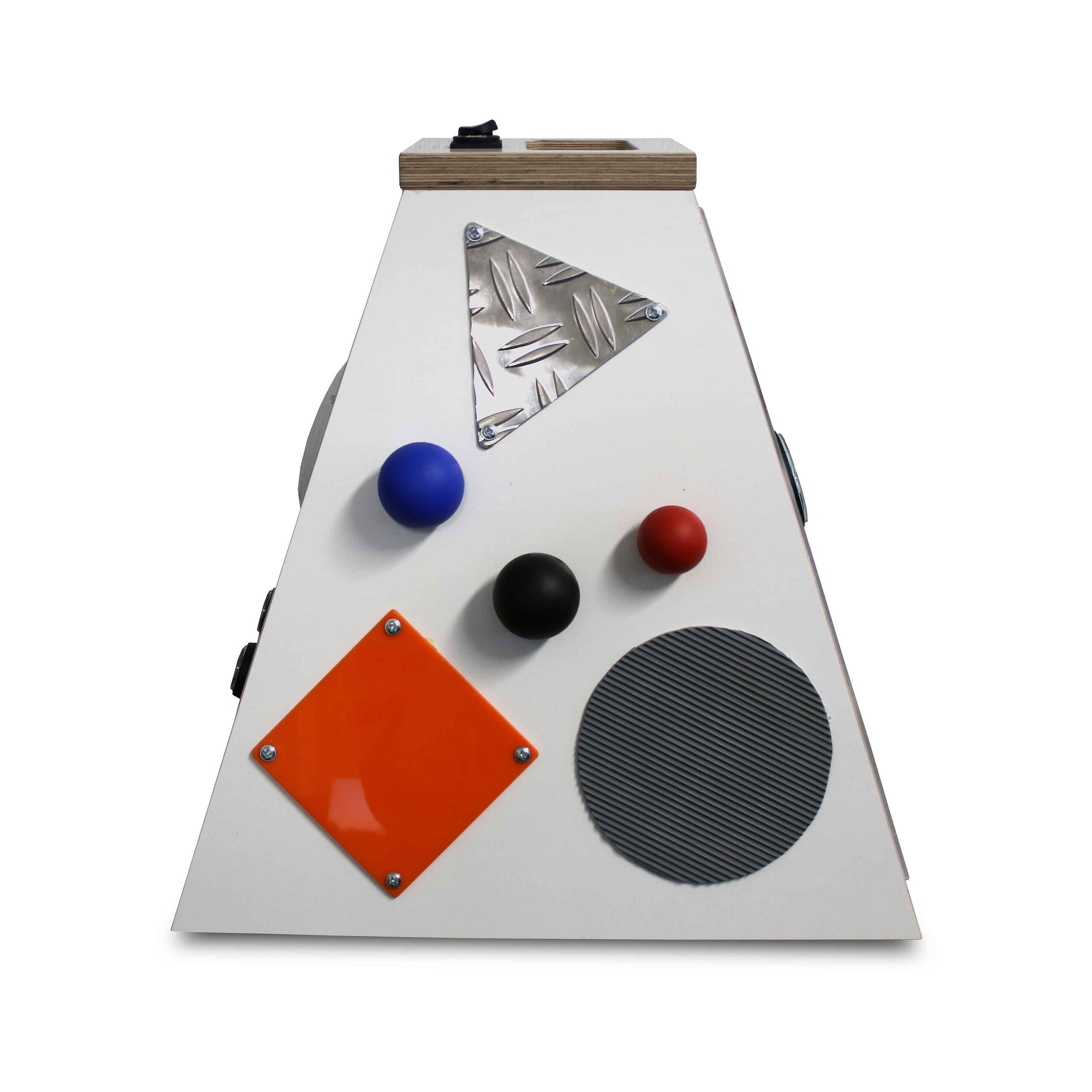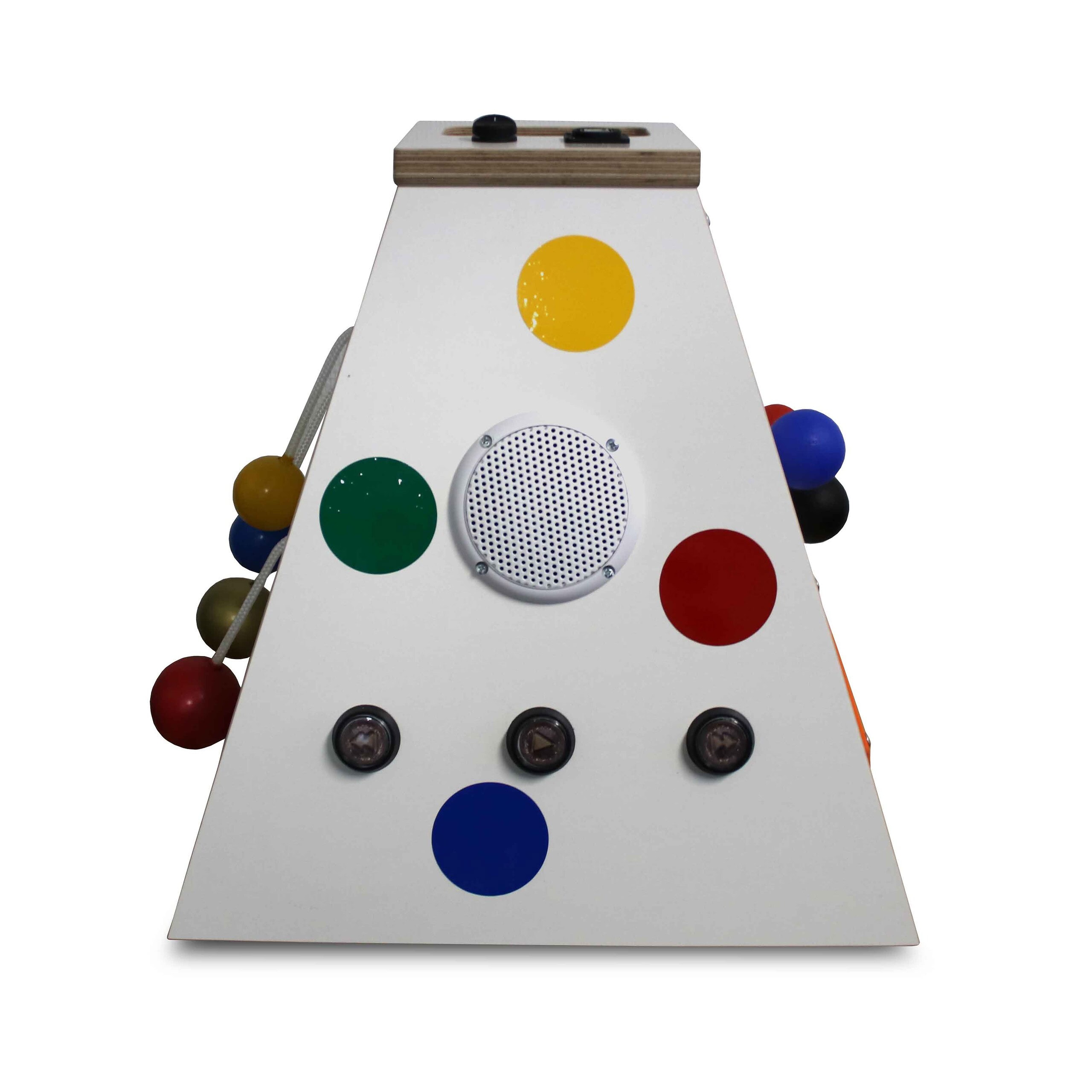 Discover our new play pyramid! Its appeal to children is great and several children can try out the different elements together, such as feeling, touching, turning and making sounds. Hand and eye coordination and fine motor skills are stimulated in a playful way. Playing together especially supports social behavior in small groups. Height 36 cm.