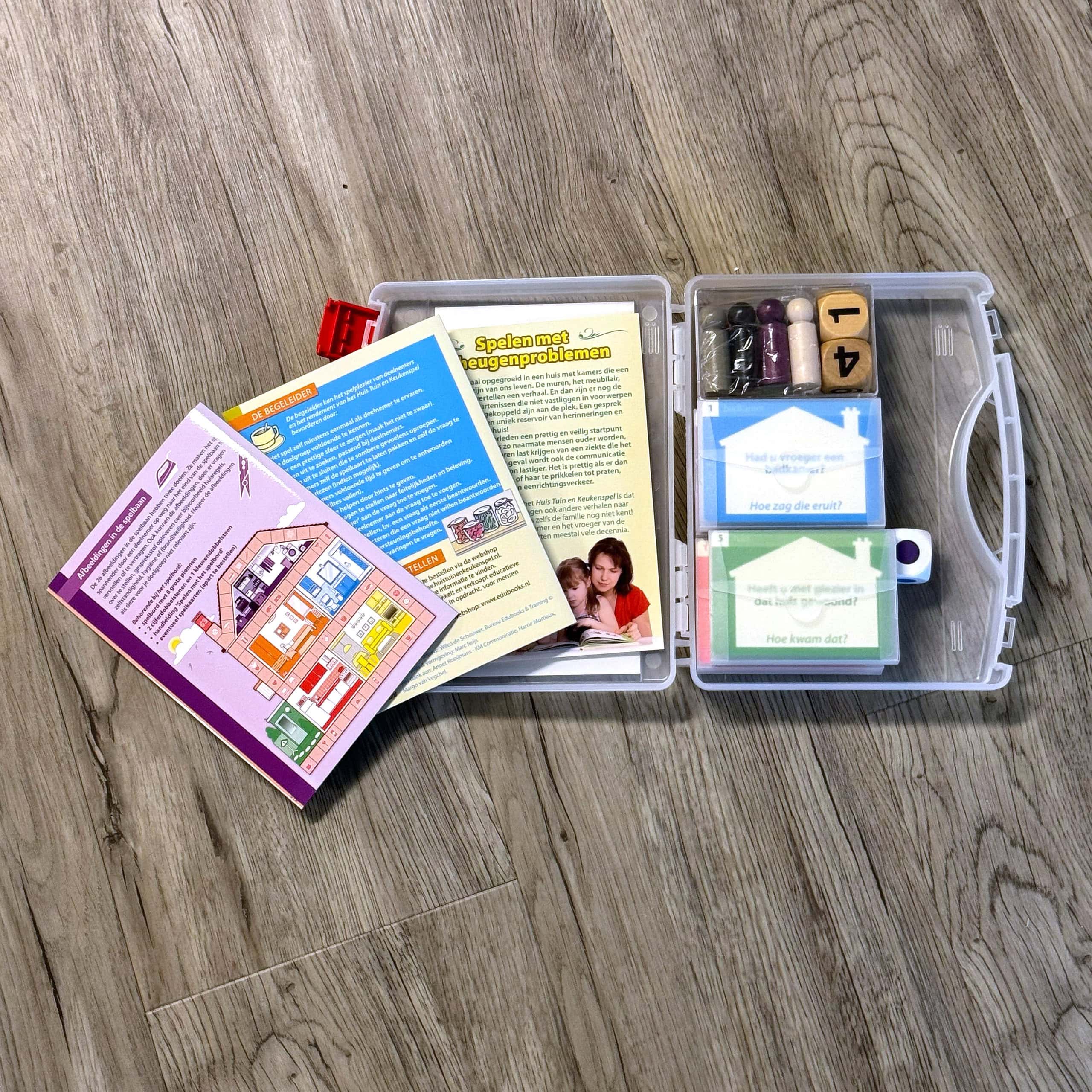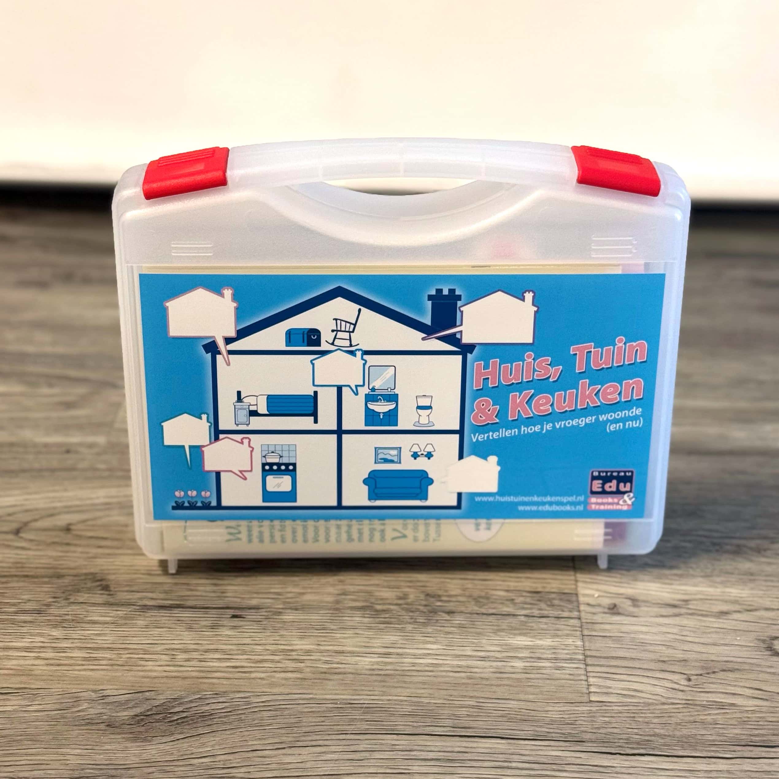This game was completely revamped in 2017. The number of game cards has doubled and they have become bigger and more beautiful. The case contains 144 game cards with questions divided into 6 themes: House garden and barn, Kitchen, Living room, Bathroom, Bedroom, Basement hallways and attic. Each theme has its own color, allowing the game to be played with the color die. Two short manuals separately provide information about: the game and the various methods of working, playing with memory problems.