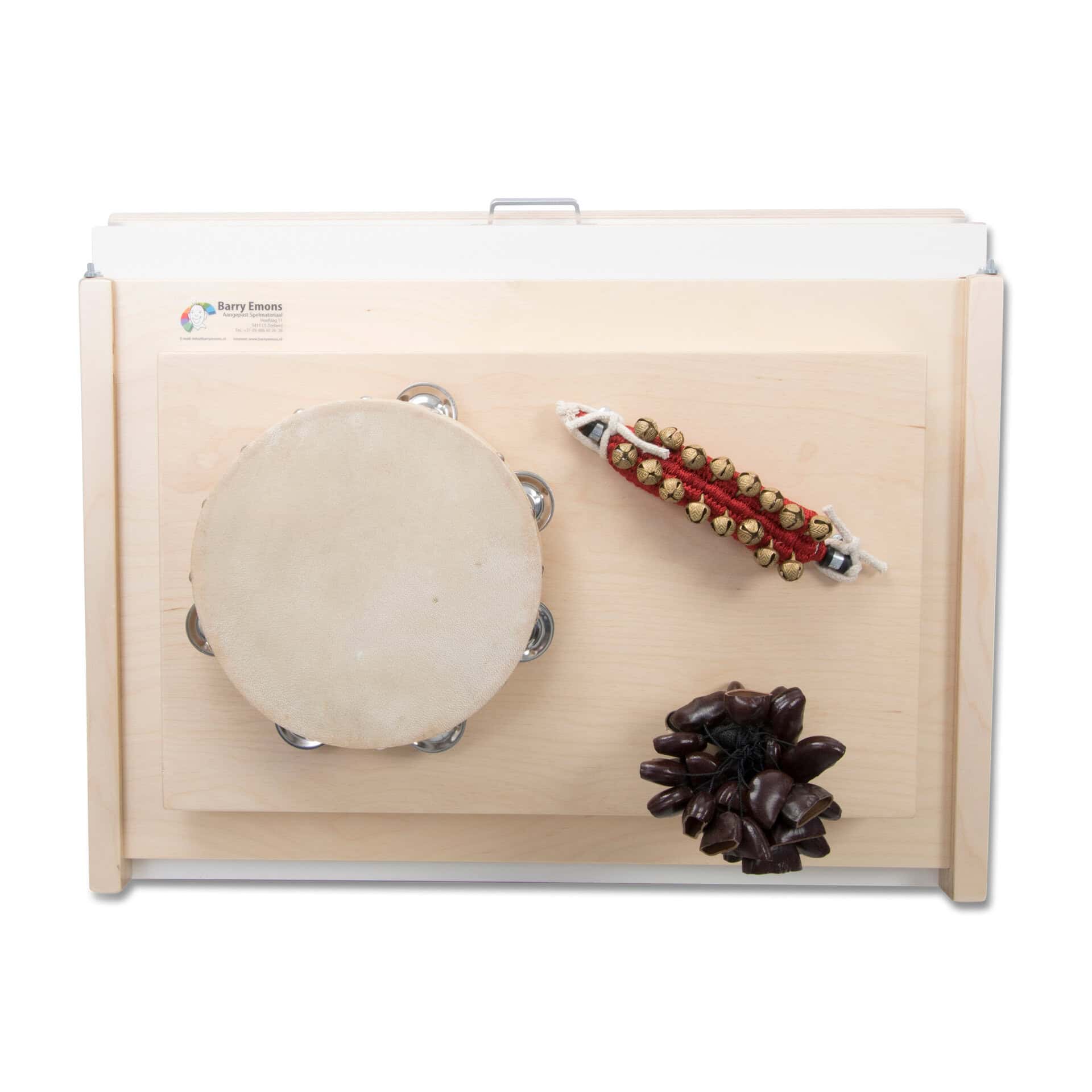 A plate with three musical instruments that make quick sounds when tapped. This music plate is played with the hands only. Dimension of acitvity plate: 39.5 x 57.5 cm Note: comes without frame!