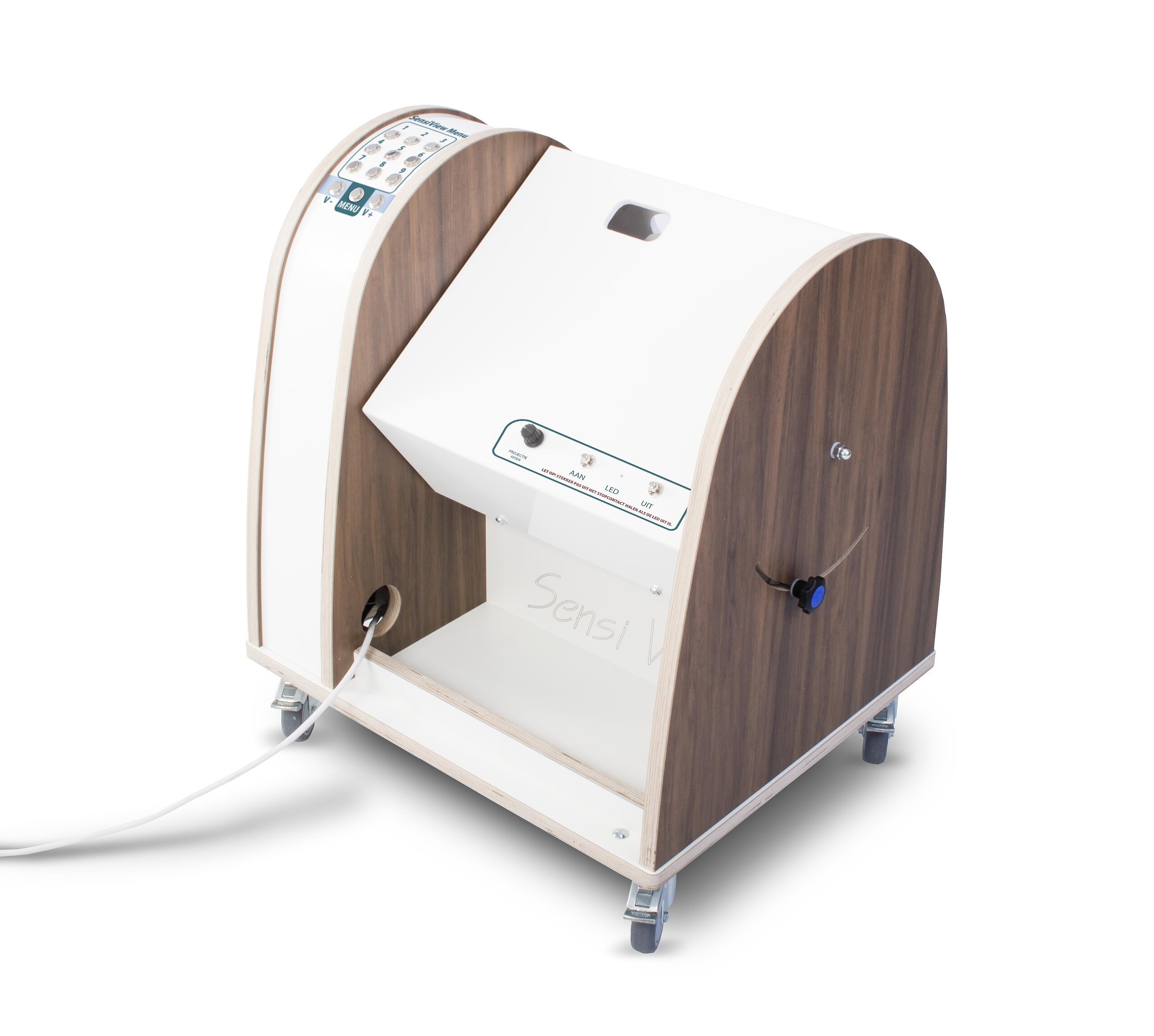 The SensiView is an experience unit, which projects onto the wall. Through the projections with recognizable images, the senses of your residents are stimulated. Matching sound or music is played at the volume you set. The SensiView is built into a compact cabinet. The housing in which the projector is incorporated,is mounted on the ceiling.