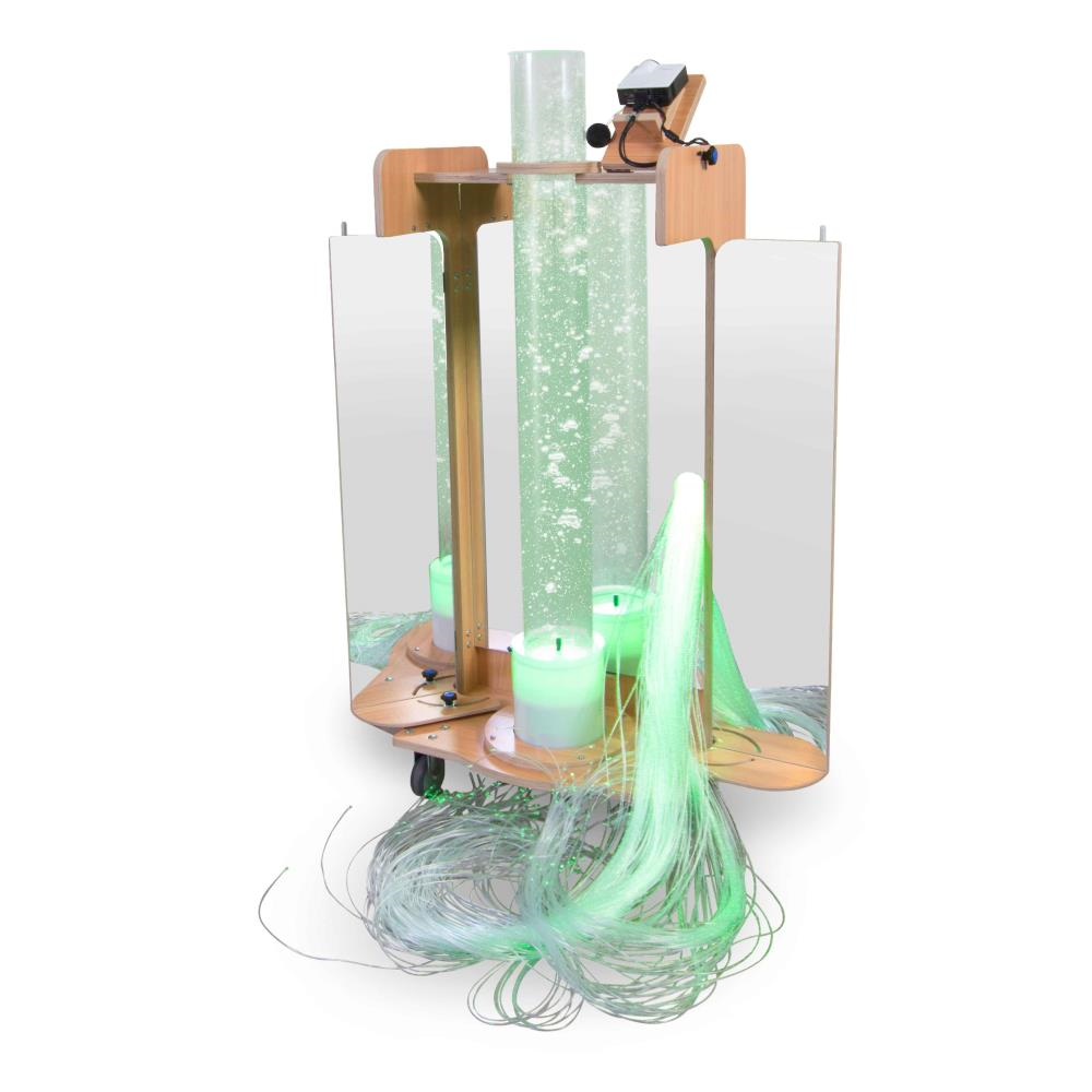 Bubbles, projection: all functionality is integrated in the Sophie snoezelen/sensory cart. The ergonomic cart stands on sturdy wheels (3 casters and 1 fixed wheel) and can be used anywhere. It is equipped with various elements that can stimulate your…