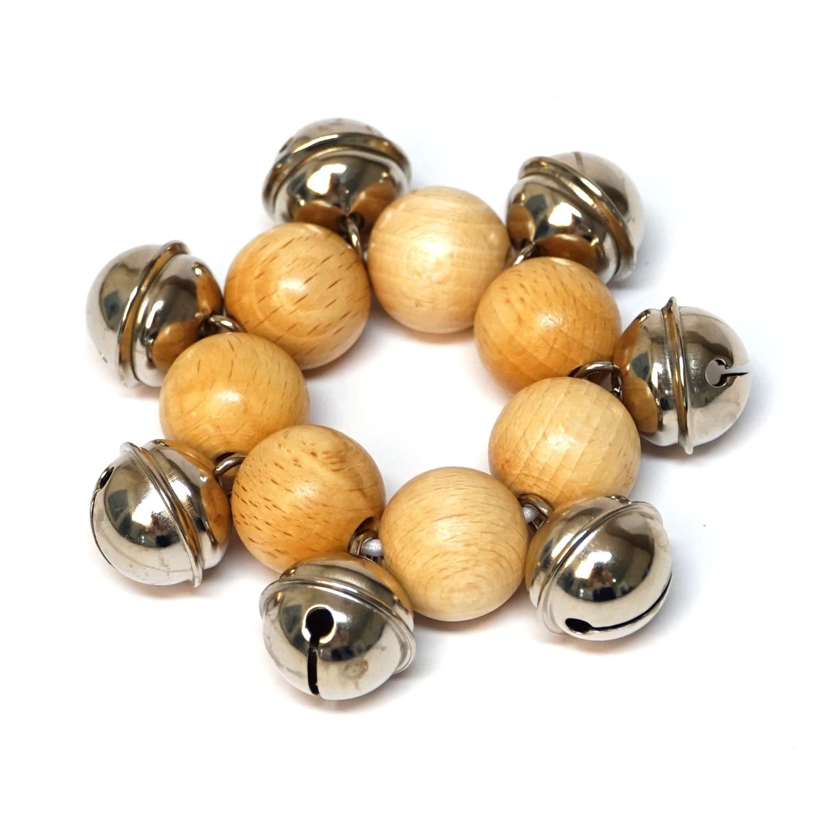 Bellenarmband van blank hout met 7 belletjes (9x2cm)