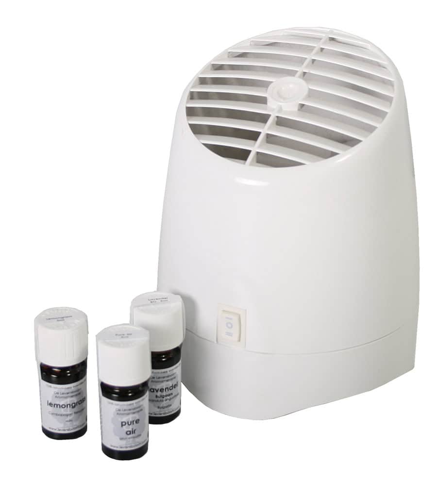 Bij de Aromastream wordt de olie niet verwarmd. Na het aanbrengen van enkele druppels op de onderzijde van het filter wordt de geur omhoog gezogen door een ventilator en via de bovenzijde de ruimte in geblazen. Door de schakelaar op stand 2 te zetten is het mogelijk snel en veilig bepaalde geuren te verspreiden. Aan deze set zijn 3 olien à 10 ml toegevoegd (lemongrass, pure air en Franse lavendel) Pure Air voorziet de ruimte van een heldere sfeer en verdrijft muffe, bedompte luchtjes. De frisheid en zuiverheid spatten er vanaf. Ideaal voor een schone en zuivere lucht. Fijn voor de luchtwegen. Met onder meer pepermunt, eucalyptus, citroen en den. Ontspan met de zacht frisse geur van lavendel.