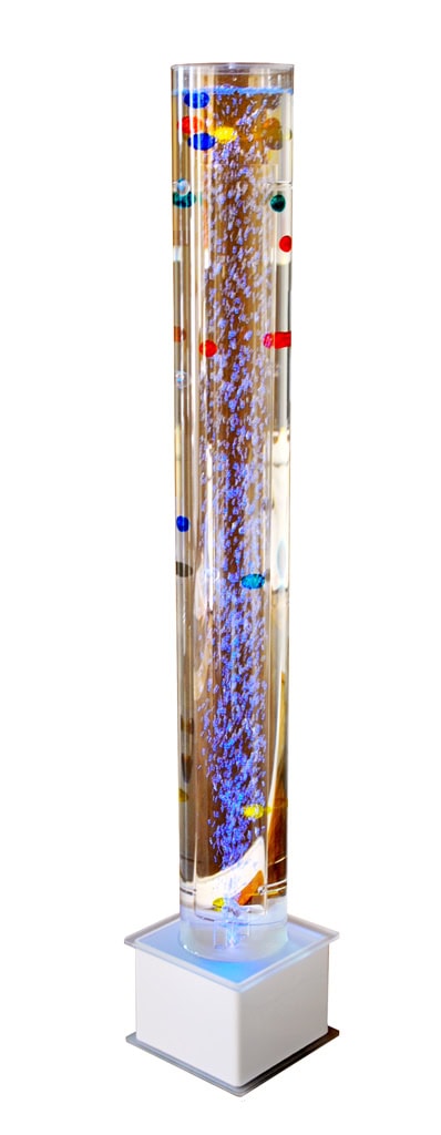 Gekleurde balletjes zweven beurtelings omhoog door de binnenste buis en weer omlaag door de buitenste buis. Samen met de talloze luchtbellen vormt dit een boeiend schouwspel. De kleur van het water en de luchtbelletjes veranderen regelmatig dankzij de ingebouwde LED-verlichting die ook de voet mee verlicht.