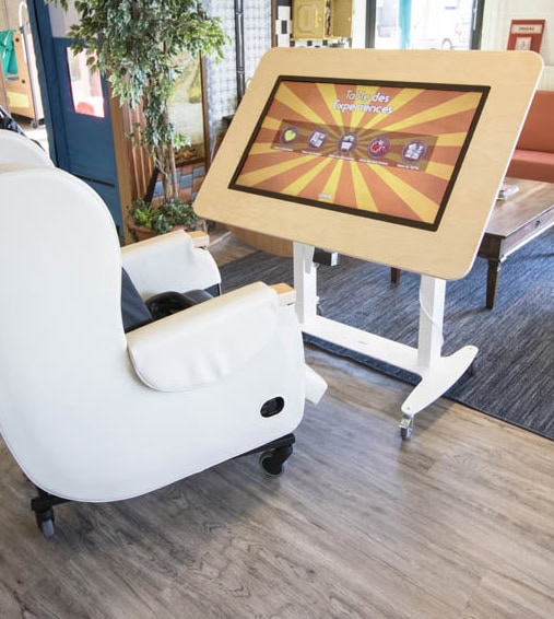 Het model is robuust, betrouwbaar, duurzaam en energiezuinig. Het gladde oppervlak maakt het schoonmaken gemakkelijk. De hoogte van een gemiddelde rolstoel, gecombineerd met de optimale kijkhoek, heeft de hoogte van onze huidige BelevenisTafel Ouderenzorg bepaald. Inmiddels werken verschillende zorginstellingen in Nederland met deze multitouchtafels. Het is mogelijk om de tafel op een andere hoogte te bestellen.