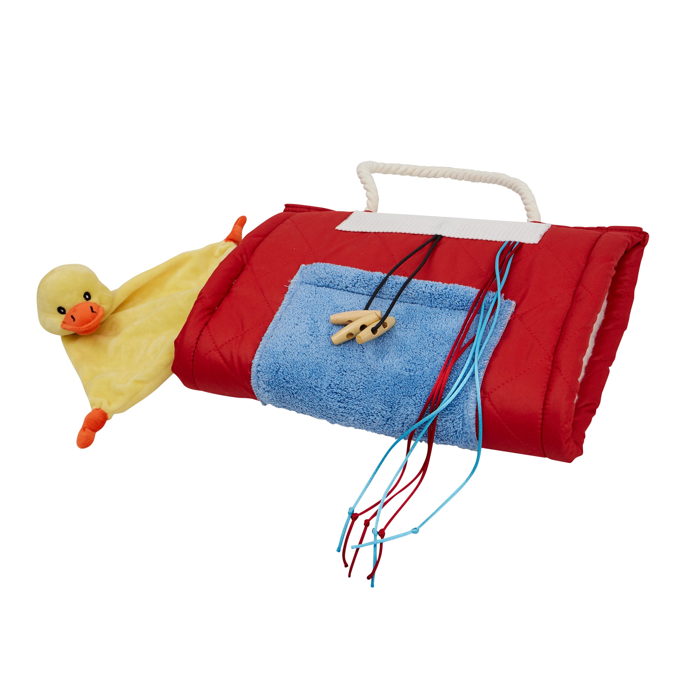 Belevingsmuff in de kleur rood, wasbaar, met handvat