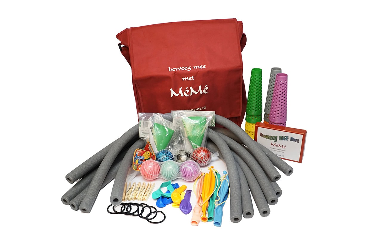 Bewegen is goed en ontspannend voor iedereen. Een deskundige heeft zo’n twintigtal materialen als foambuizen, kegels, punchballen en spreukenkaarten in de tas bijeen gebracht.