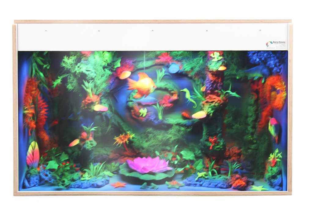 Dit aquarium uitgevoerd in wit berken, blijft boeien en zorgt voor urenlang kijkplezier. De standaard afmetingen zijn 100 x 40 x 65 cm hoog en het aquarium is standaard voorzien van één draaiend element. Op aanvraag is het aquarium ook leverbaar met meerdere draaiende elementen, andere thema’s of in een andere afmeting. Bel of mail ons voor de mogelijkheden! Deze afbeelding dient slechts ter illustratie en kan afwijken van het geleverde product.