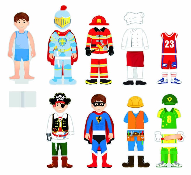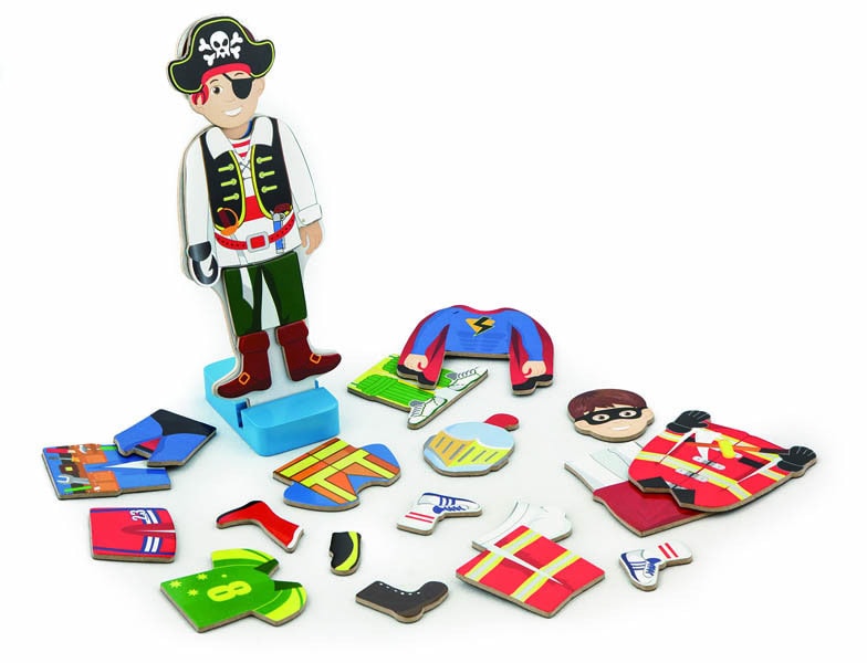Kleed deze jongen aan met magnetische kleren. 36 kleren geven 8 outfits.