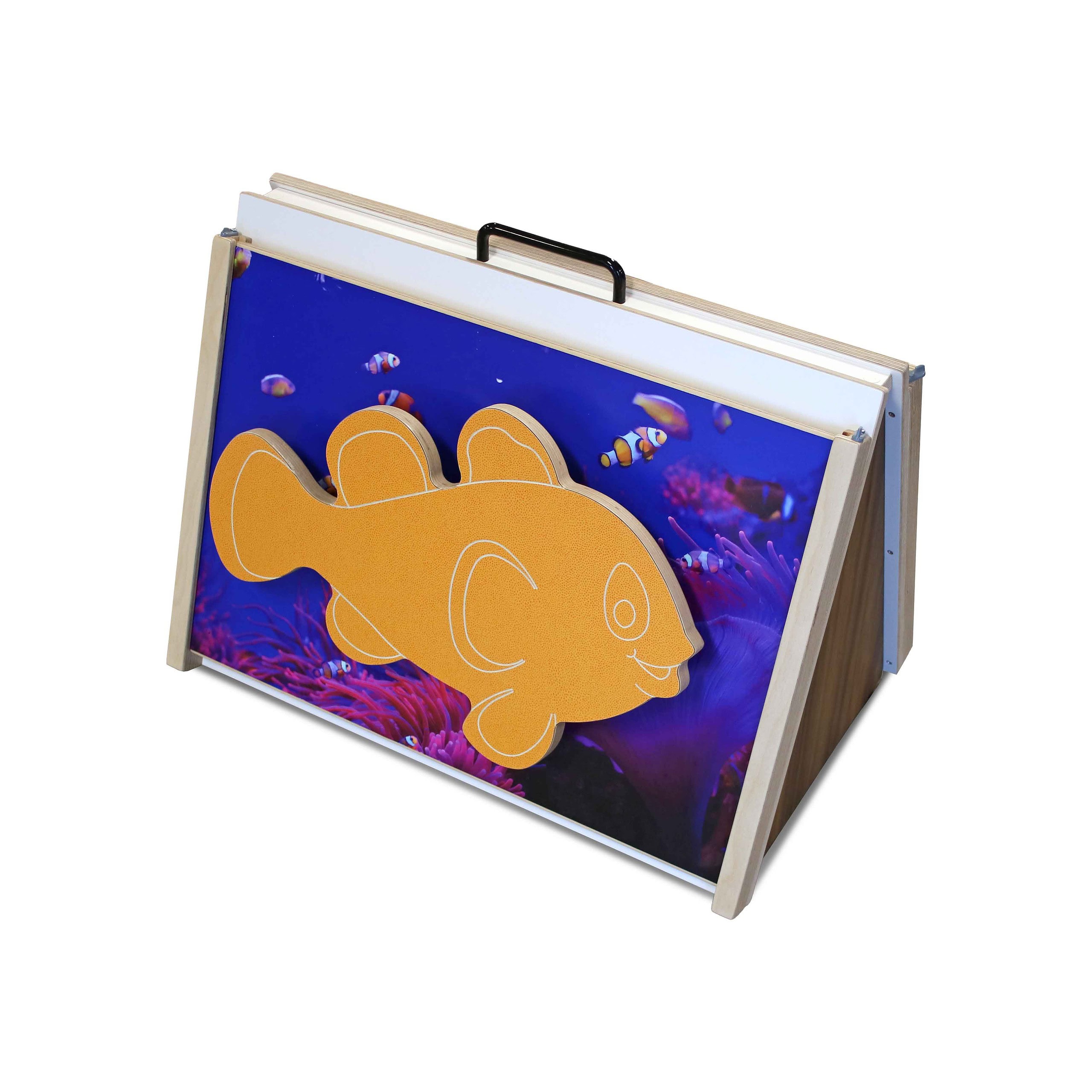 Raamwerk (Berken Melamine wit/Dark Hazelnut) speciaal gemaakt als inschuifmogelijkheid voor de speel- en werkplaten. Het grote voordeel is dat het aan twee zijden tegelijkertijd gebruikt kan worden en is uitgevoerd als praktisch koffermodel. Afmeting: 61 x 41 cm.