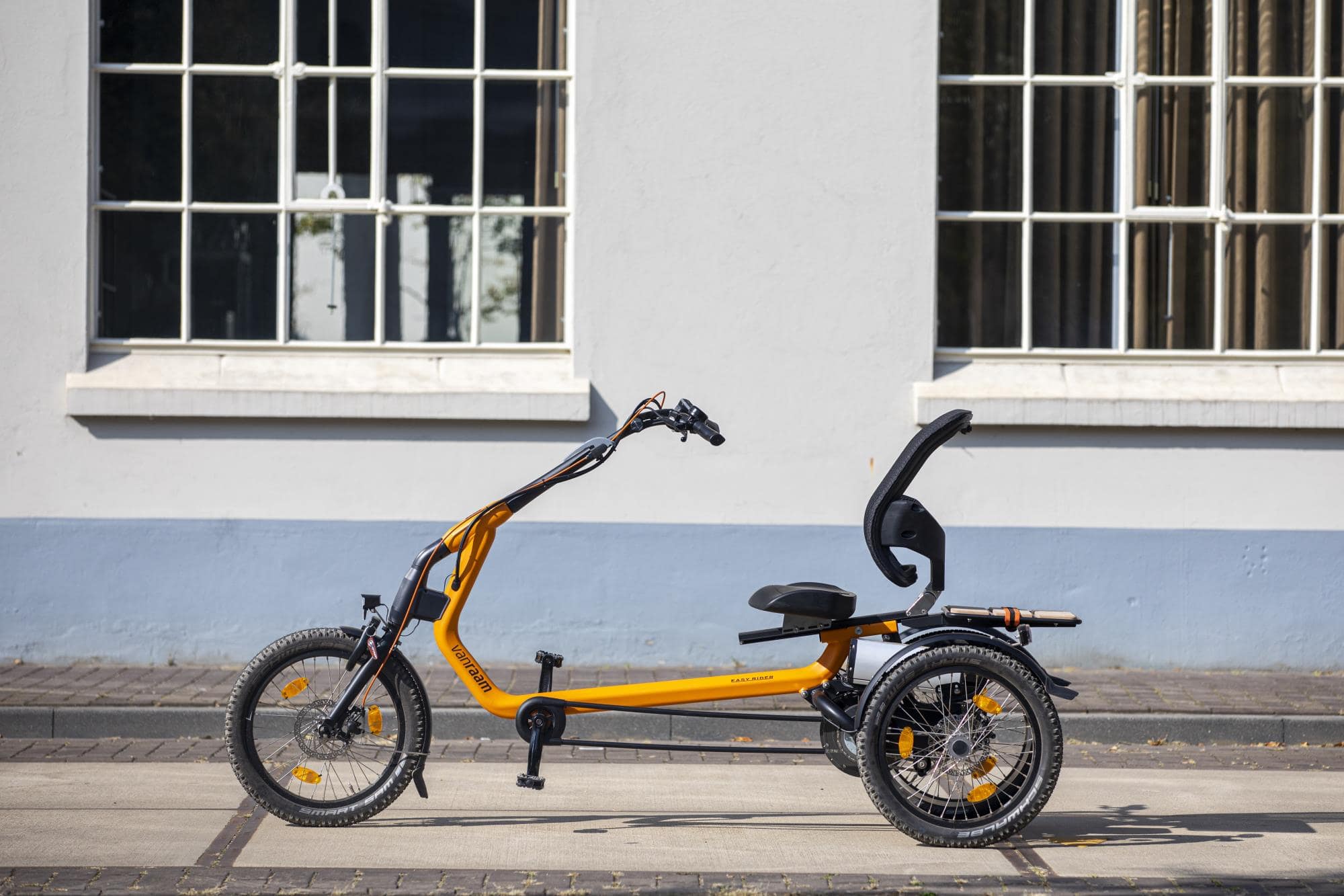 De Easy Rider driewielfiets is een zitdriewielfiets voor volwassenen. Door het unieke frame is er een lage instap en ligt het zwaartepunt lager. Een groot voordeel van deze derde generatie zitdriewielfiets is dat de Easy Rider heel eenvoudig fietst, ook als je nog nooit op een driewielfiets hebt gefietst. De Easy Rider heeft een comfortabele zitting met verstelbare rugsteun, stuitontlasting en opstaande randen aan de zijkant voor een beter zitcomfort en zijdelingse steun. Dit zorgt voor een stabiel en veilig gevoel. De afstand van de zitting is eenvoudig te verstellen met de snelspanhendel. Afstappen gaat eenvoudig doordat de fiets een wat hogere zitting heeft. De voorwaartse trapbeweging en de vering in het frame zorgen voor een perfect rijcomfort. De Easy Rider zitdriewielfiets is enorm wendbaar en heeft een kleine draaicirkel. Ook past de fiets door een normale deur.