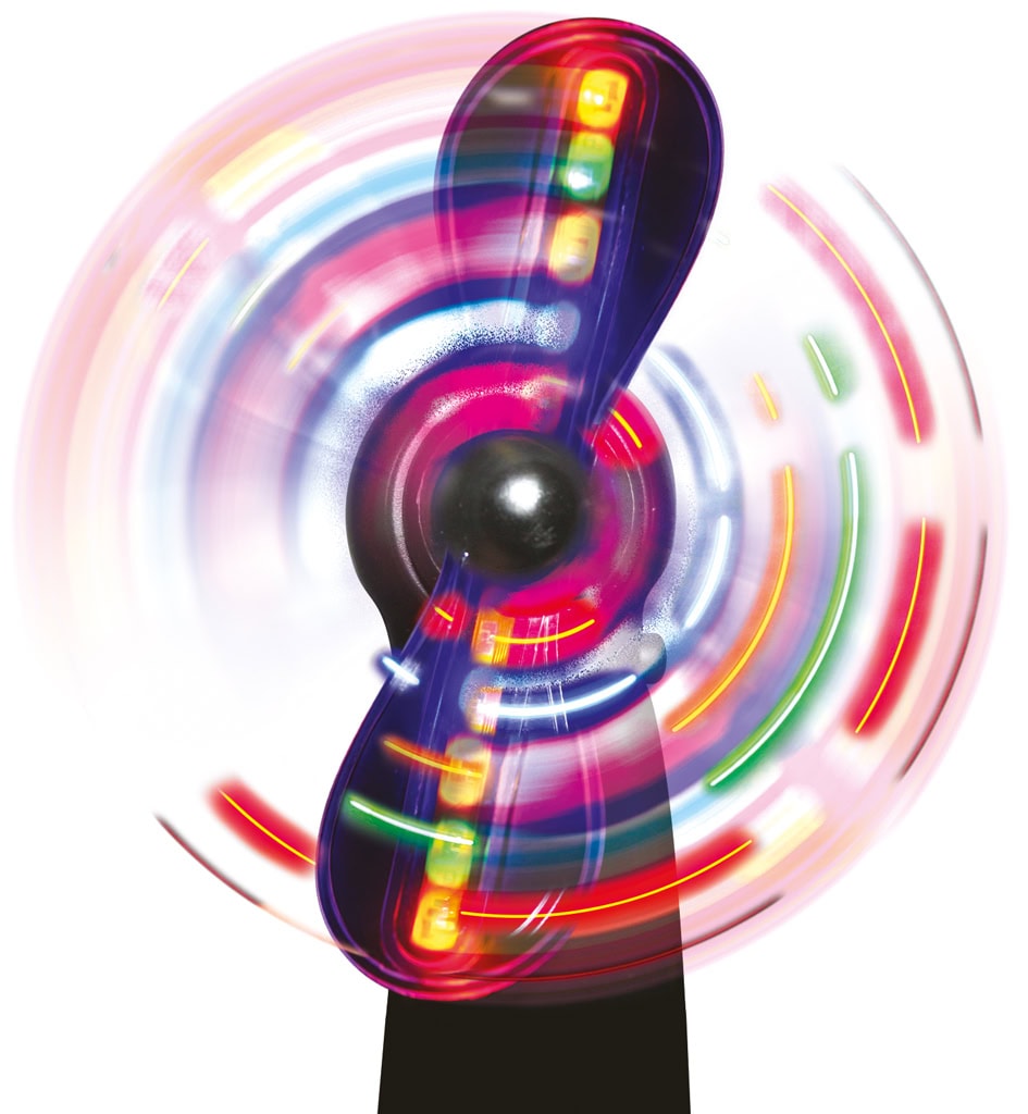 Je kunt de hypnotiserende wieken zonder probleem stoppen met je vinger. Werkt op 3 stuks AA batterijen (niet inbegrepen). Groot: 11 cm