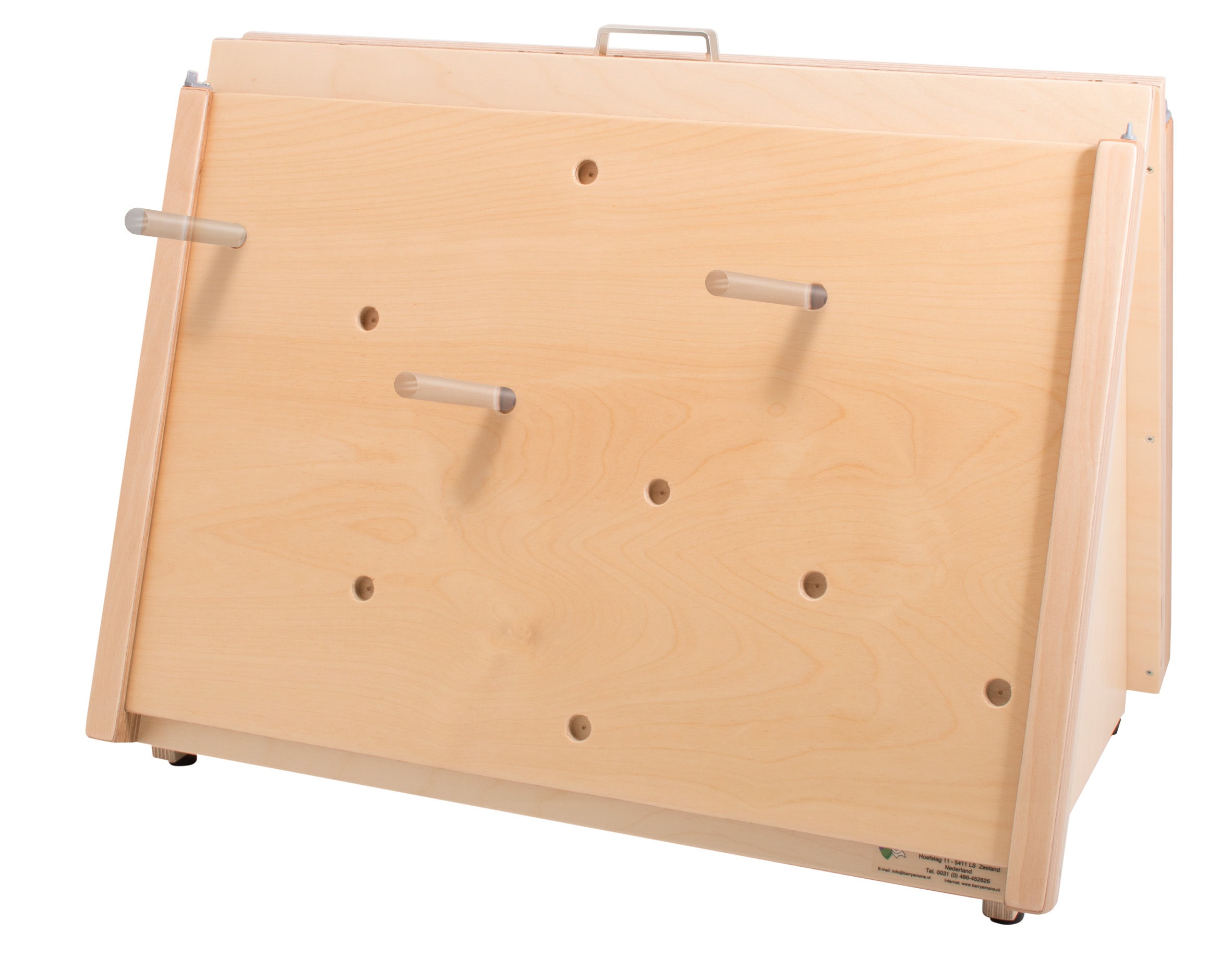 Plaat met 10 gaten waar doorzichtige staafjes uit de accessoire kist kunnen worden ingestoken.