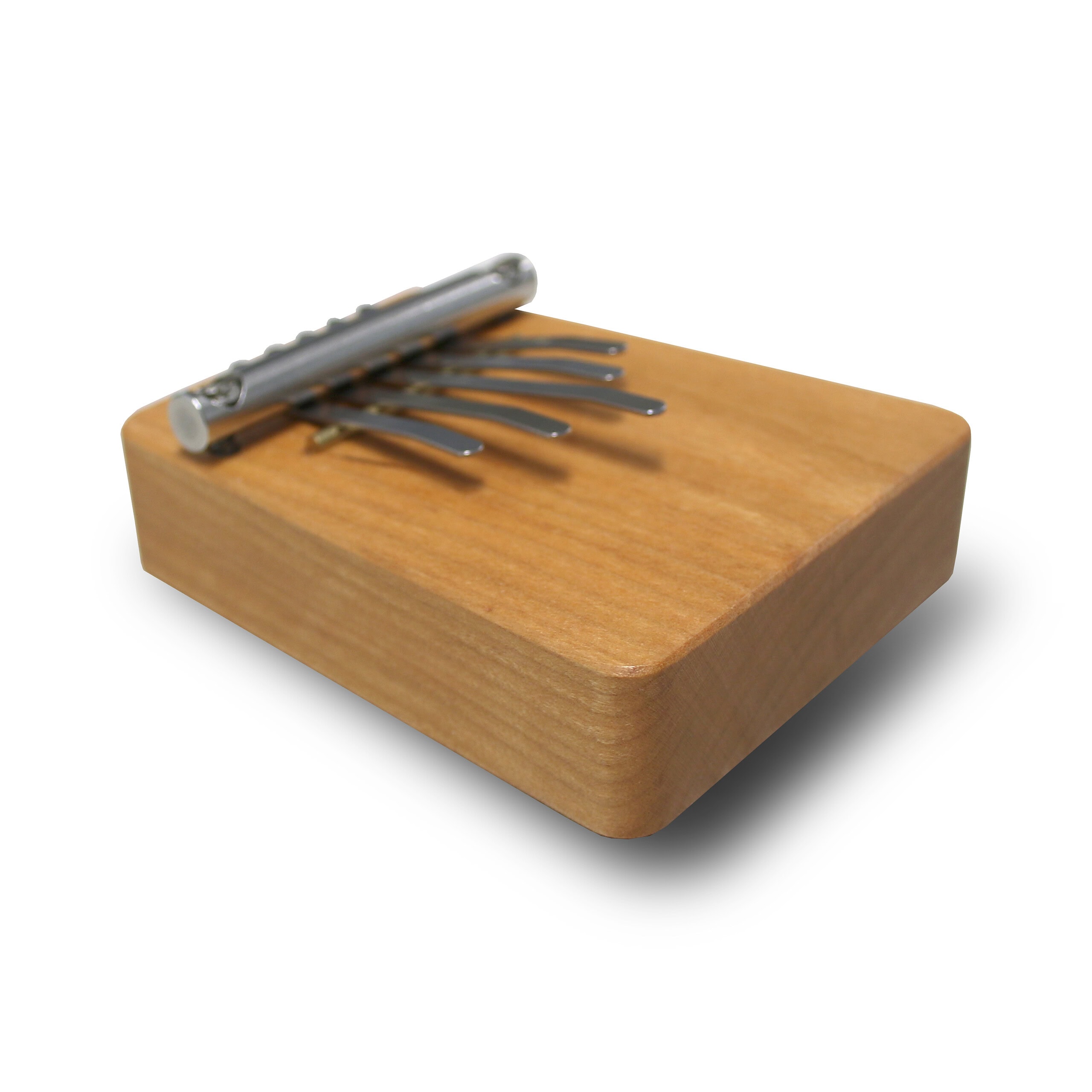 Mini kalimba of ook wel duimpiano genoemd, 5 tonig op kersenhouten blok