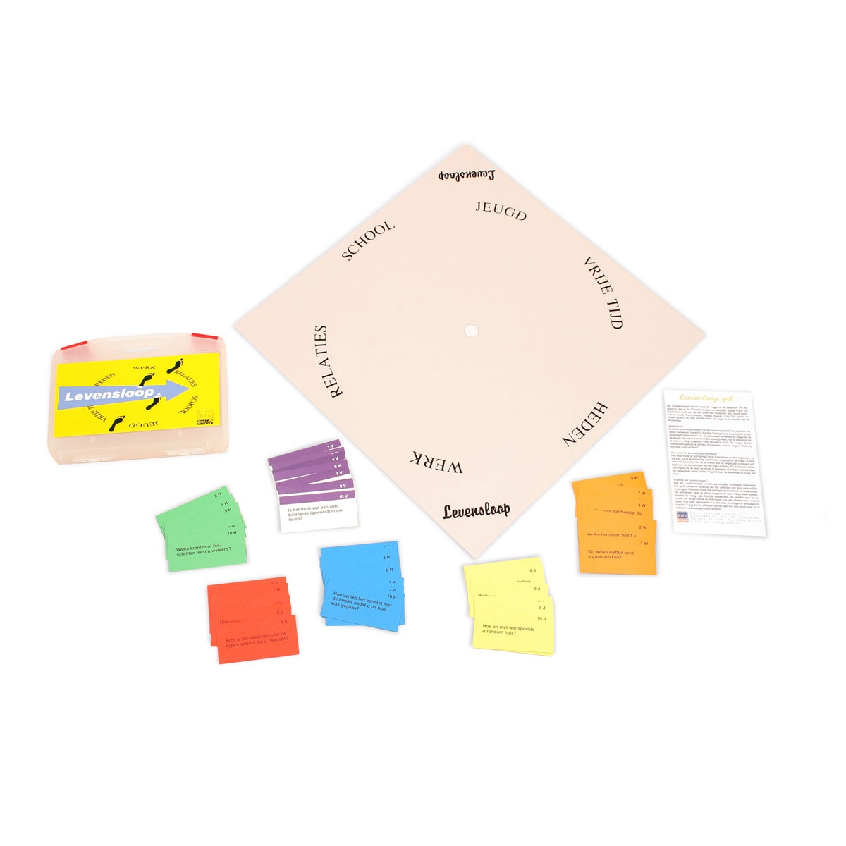 Het Levensloopspel is in 2017 geheel vernieuwd. De koffer bevat nu 144 spelkaarten, per categorie mooi verpakt in stevige plastic doosjes. De vragen op de spelkaarten gaan over de levensfasen Jeugd, School, Werk, Relaties, Vrije Tijd en Heden. Door n…
