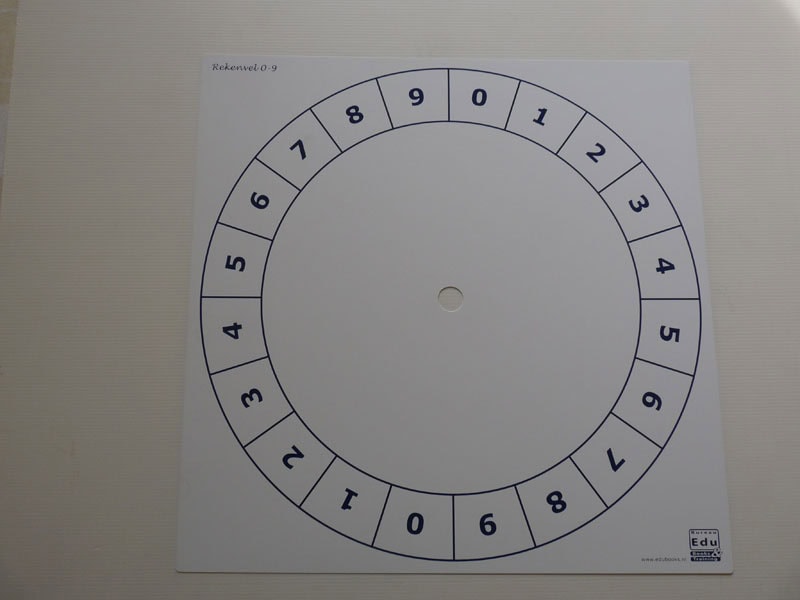 De wijzerplaat (BE01487) geeft samen met dit oplegvel de cijfers tot en met 9 aan. In combinatie met een dobbelsteen en de wijzerplaat kunnen op speelse wijze rekensommen gemaakt worden. Let op: exclusief wijzerplaat (BE01487)!