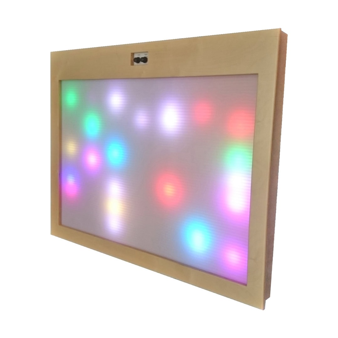 Een ander voorbeeld is het geen-geluid programma, waarbij de wand juist minder licht geeft wanneer er geluid klinkt. Via het gebruiksvriendelijke controlepaneel is de programmakeuze en de snelheid van de lampjes gemakkelijk in te stellen.