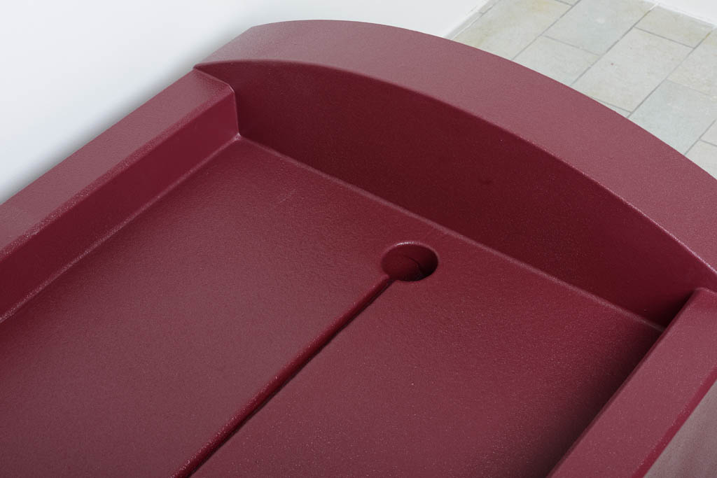 Daarom heeft Barry Emons nu de PureFit ontwikkeld, een ligelement dat 90% hygiënischer en minder bewerkelijk is. Het ligelement is gemaakt van EPS en zacht schuim met twee lagen coating, waarbij de kleur in de coating is verwerkt. Het heeft een ingebouwde afvoer met aan de onderzijde een roestvrijstalen beddenpan op wielen, die maximaal 17 liter kan opvangen. Hierdoor kun je het ligelement eenvoudig schoonmaken met een normale reiniger of Dettol.