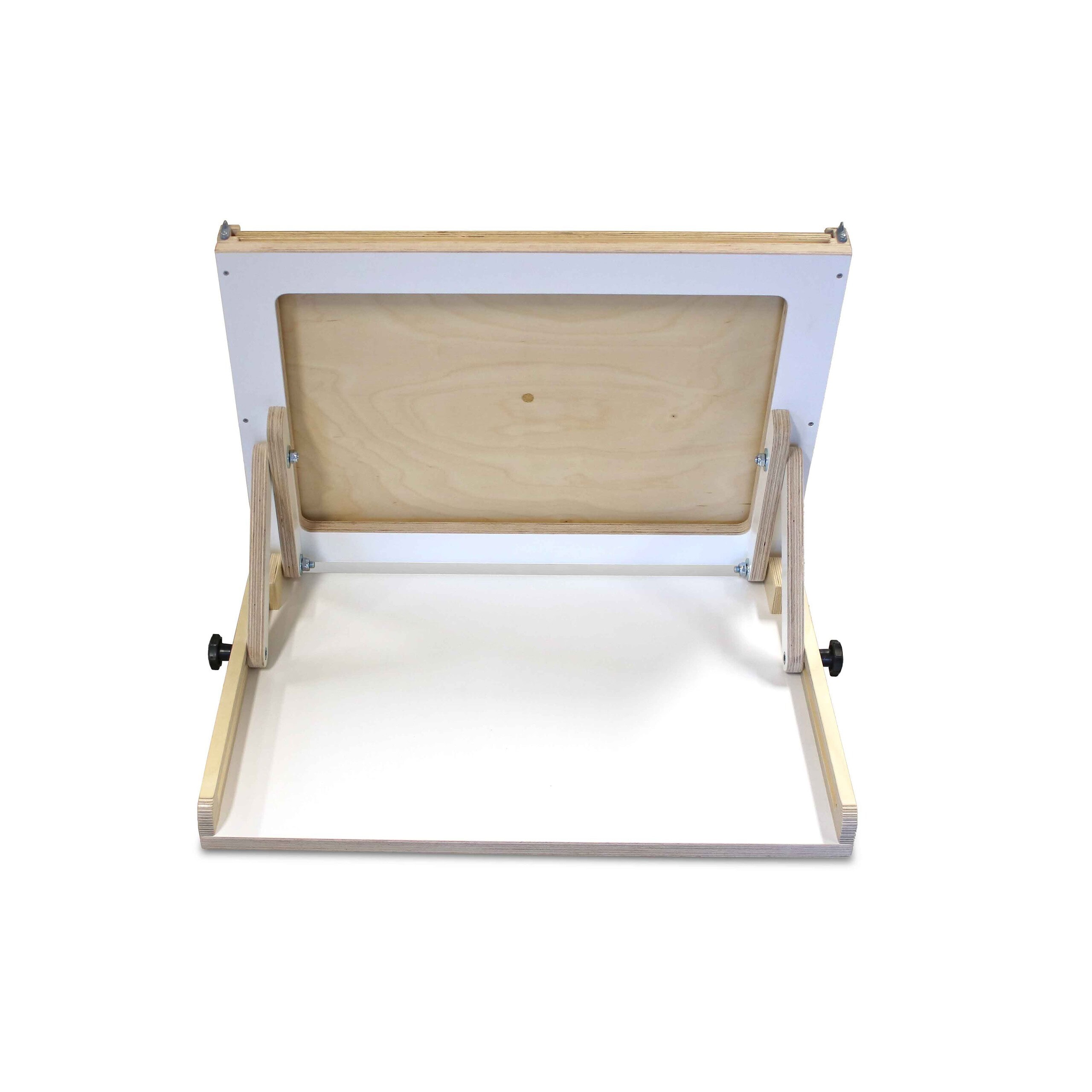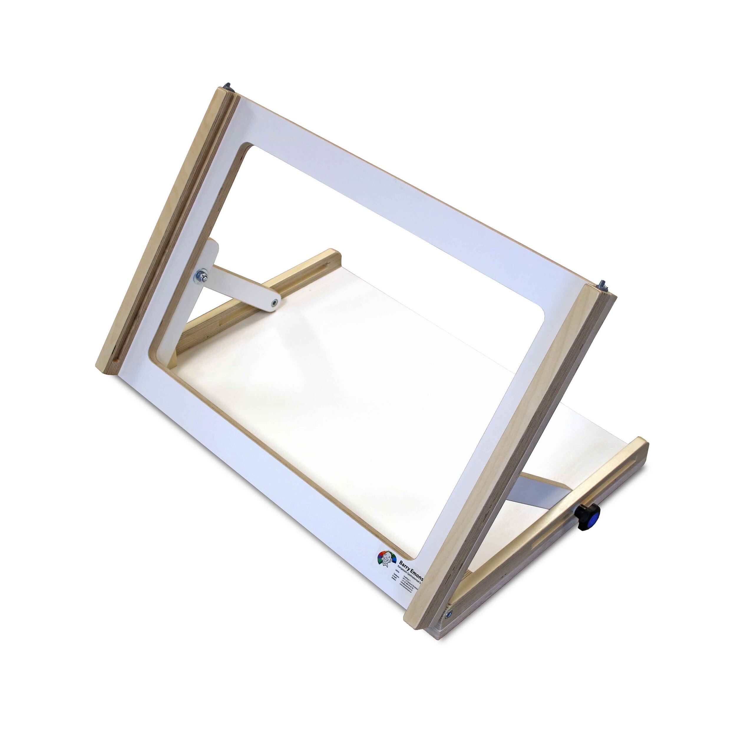 Verstelbaar raamwerk in Berken Melamine wit t.b.v. onze activiteitenplaten. Deze hebben allemaal de afmeting 57,5 x 39,5 cm. Let op: wordt zonder afgebeelde speelplaat geleverd.