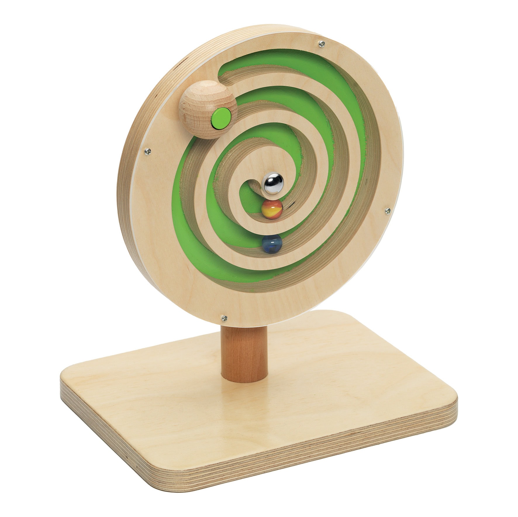 De Rinkel Spiraal is een interactief speelgoed dat rinkelt wanneer je het naar binnen en naar buiten draait, maar niet wanneer de knikker aankomt. Met afmetingen van 25 x 30 x 22 cm in diameter is het een leuke toevoeging aan speeltijd.