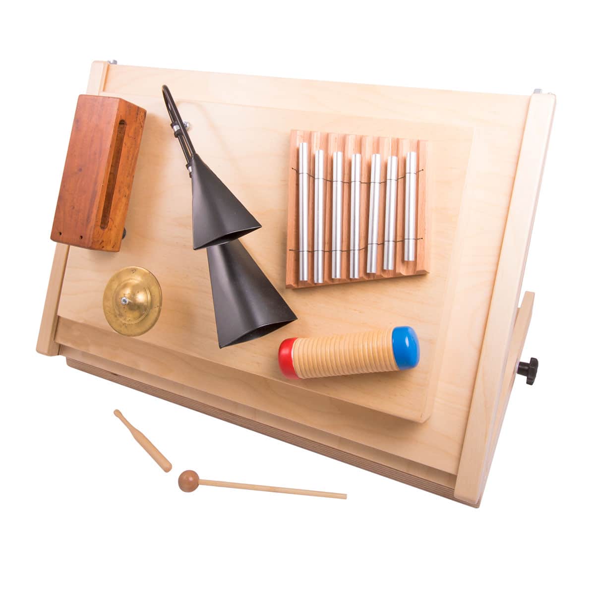 Een leuke spelplaat bestaande uit diverse ritme instrumenten. De instrumenten zijn degelijk en simpel te bespelen. Een stokje wordt meegeleverd.