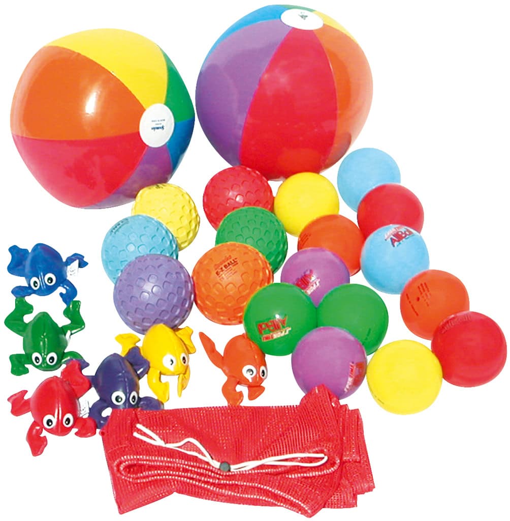 Set met alle mogelijke toebehoren voor een parachute - zwaaidoek: -6x Kikker bean bags in verschillende kleuren -6x EZ gripballen van 10cm -12x Allround speelballen van 10cm -2x Extra stabiele ballen van 20cm -1x Opberg- en transporthoes