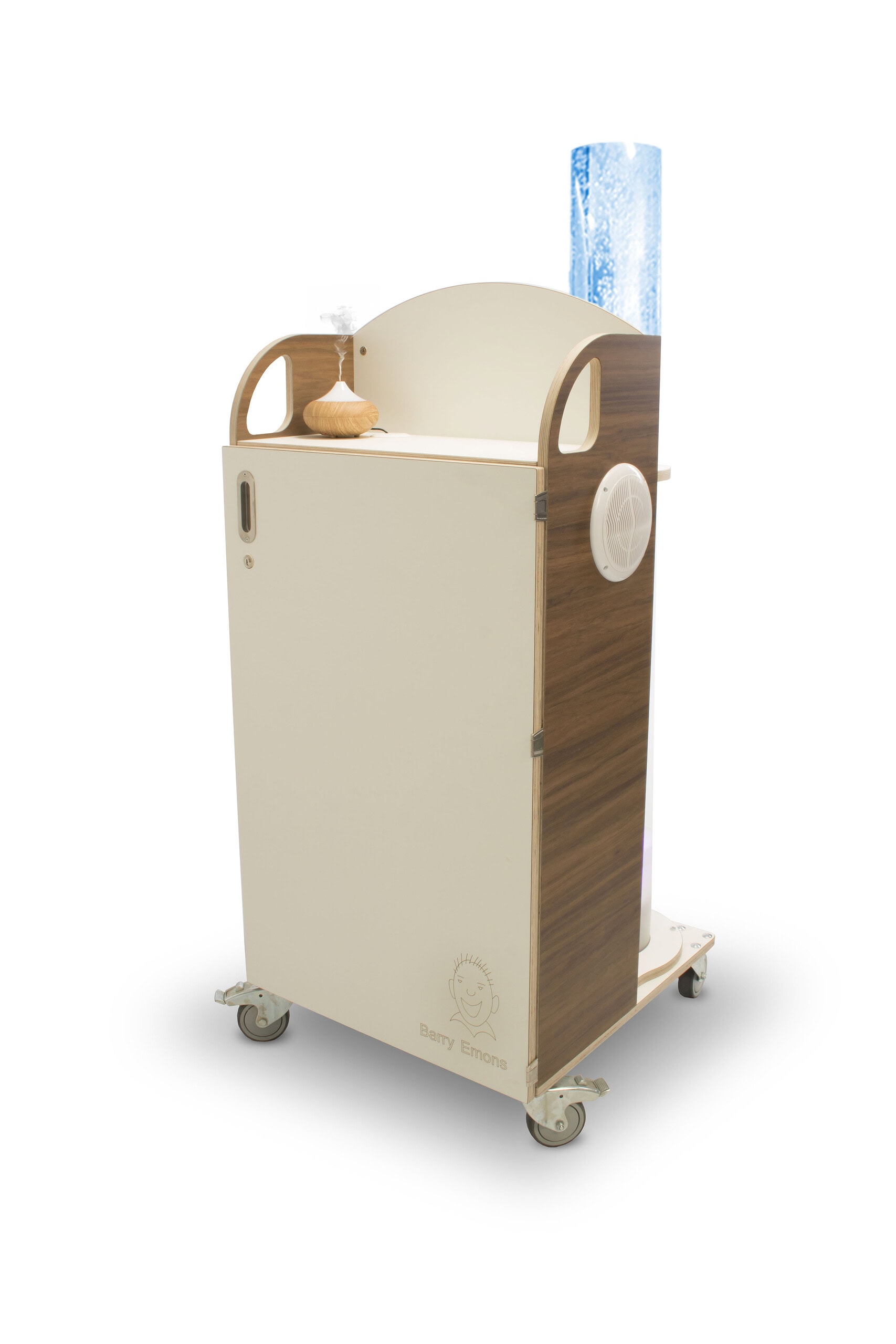 Bubbels, projectie, aroma in een natte ruimte: dat ging niet samen… tot nu toe. Op veler verzoek heeft Barry Emons een snoezelkar voor de badkamer ontwikkeld. De vraag naar beleving tijdens het badmoment van een kind of volwassen bewoner neemt toe. Alle functionaliteit is in een watervaste kar gebouwd en beschikbaar op 12 volt. Absoluut veilig dus in je natte ruimte zoals een badkamer of zwembad.