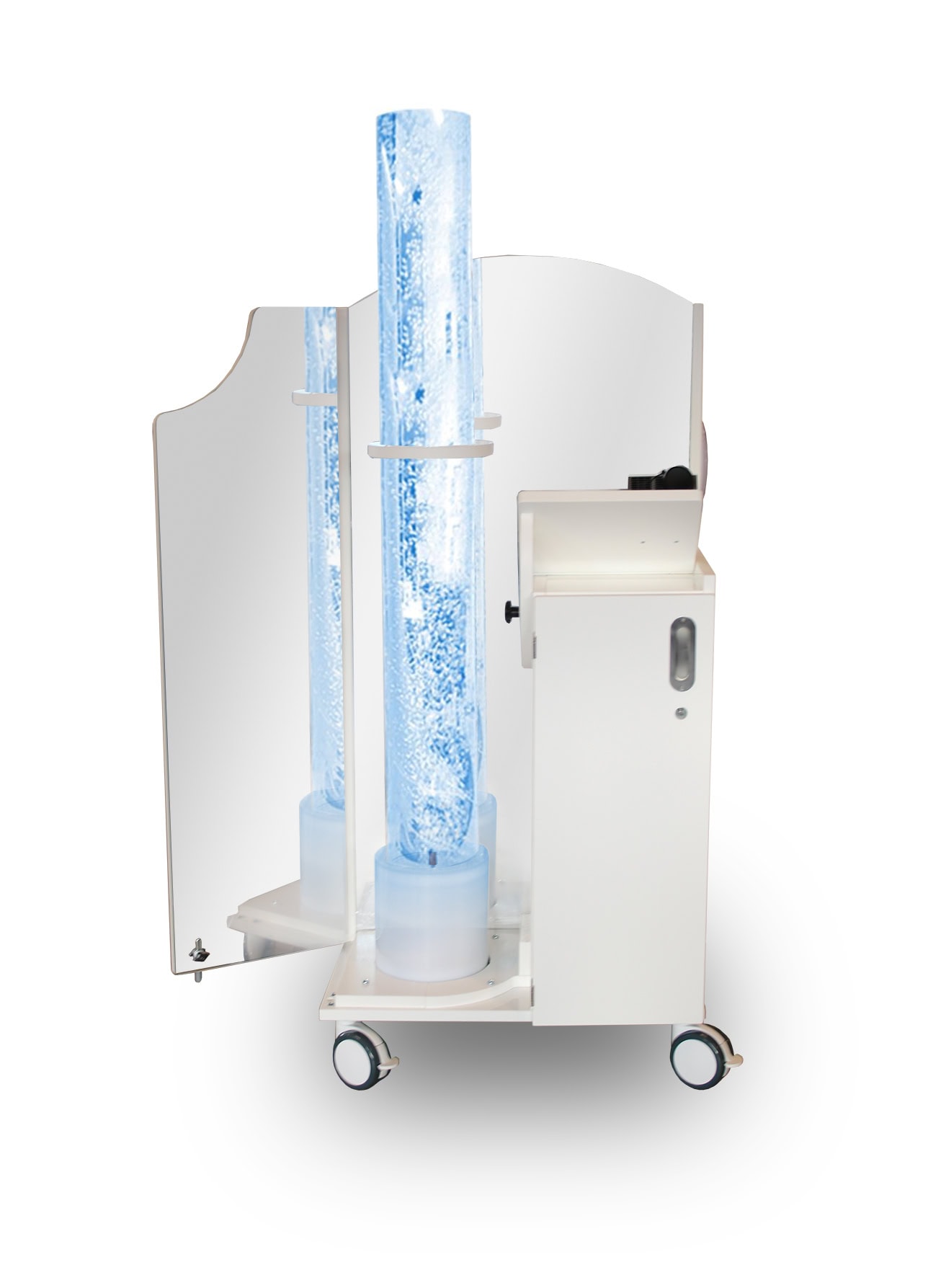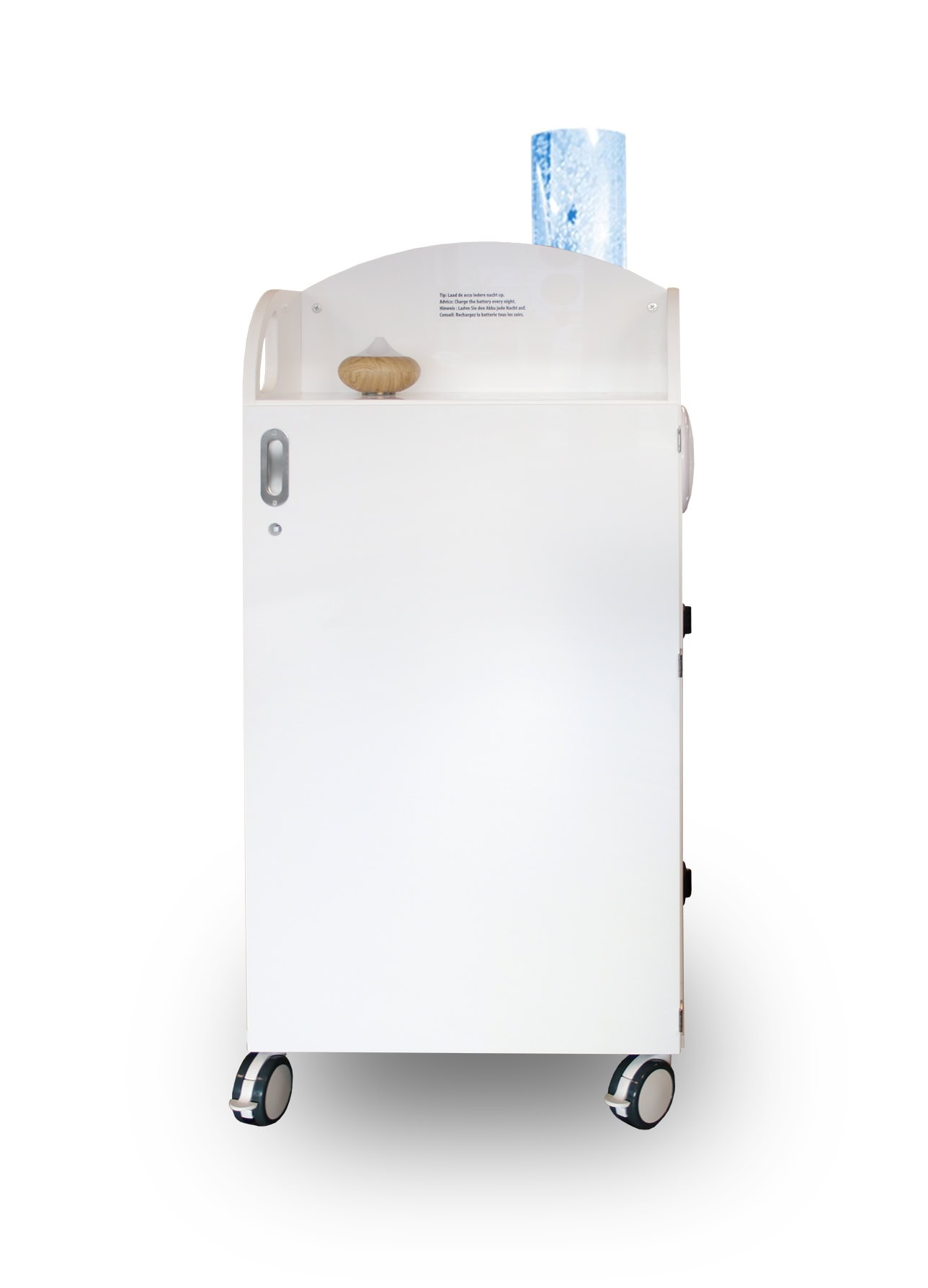 Bubbels, projectie, aroma in een natte ruimte dat ging niet samen…. tot nu toe. Op veler verzoek heeft Barry Emons een snoezelkar voor de badkamer ontwikkeld. De vraag naar beleving tijdens het badmoment van een kind of volwassen bewoner neemt toe. Alle functionaliteit is in een watervaste kar gebouwd en beschikbaar op 12 volt. Absoluut veilig dus in uw natte ruimte zoals een badkamer of zwembad. Deze variant is uitgevoerd in PP Polymeer, bijzonder chemisch resistent en daarmee veilig toepasbaar in bijvoorbeeld ziekenhuizen.