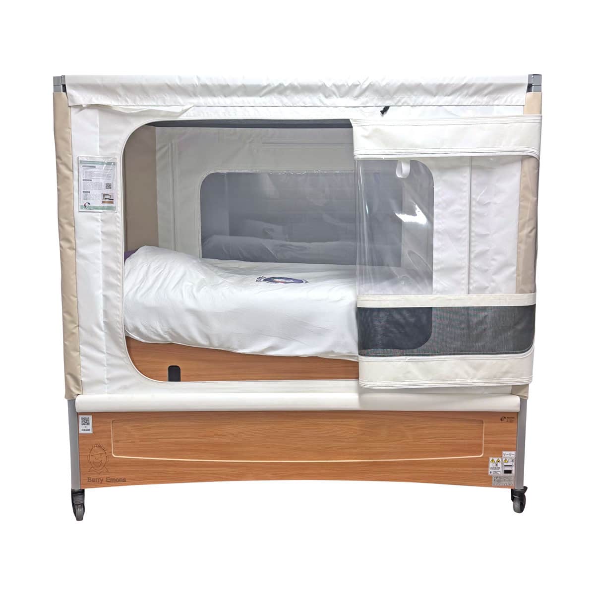 Dit bed heeft standaard een goed geventileerd dak. De tillift uitsparing aan de bovenzijde is daarmee vervallen. De bewoner kan niet uit het bed klimmen en loopt dus geen valrisico. Het doek van de SoftFit Plus is gemaakt uit één stuk in plaats van 4 vervangbare panelen. Dit bed heeft dus een minimum aan ritsen hetgeen de soliditeit ten goede komt. Overleg met je adviseur wat voor jouw situatie het beste is.