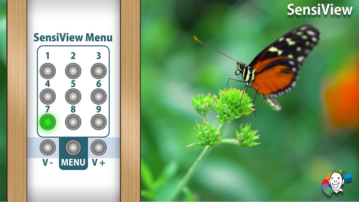 USB-stick met standaard thema's: 1. Boswandeling 2. Strandwandeling 3. Sneeuwwandeling 4. Wolkenhemel 5. Sterrenhemel 6. Tropisch Aquarium 7. Vlinders & vogels 8. Treinreis door de bergen 9. Geovormen en caleidoscoop