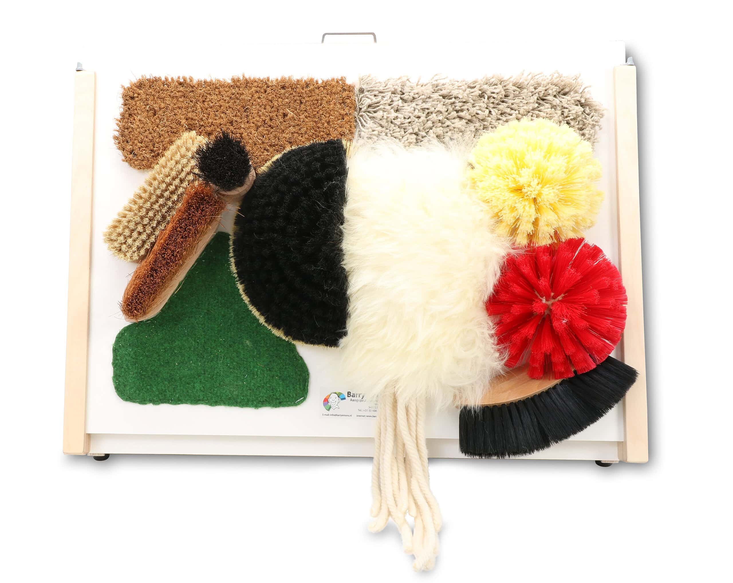 Tastplaat met een interessante combinatie van zachte en hardere tastsensaties in één plaat, De natuurlijke materialen nodigen uit om aan te raken en te ontdekken.