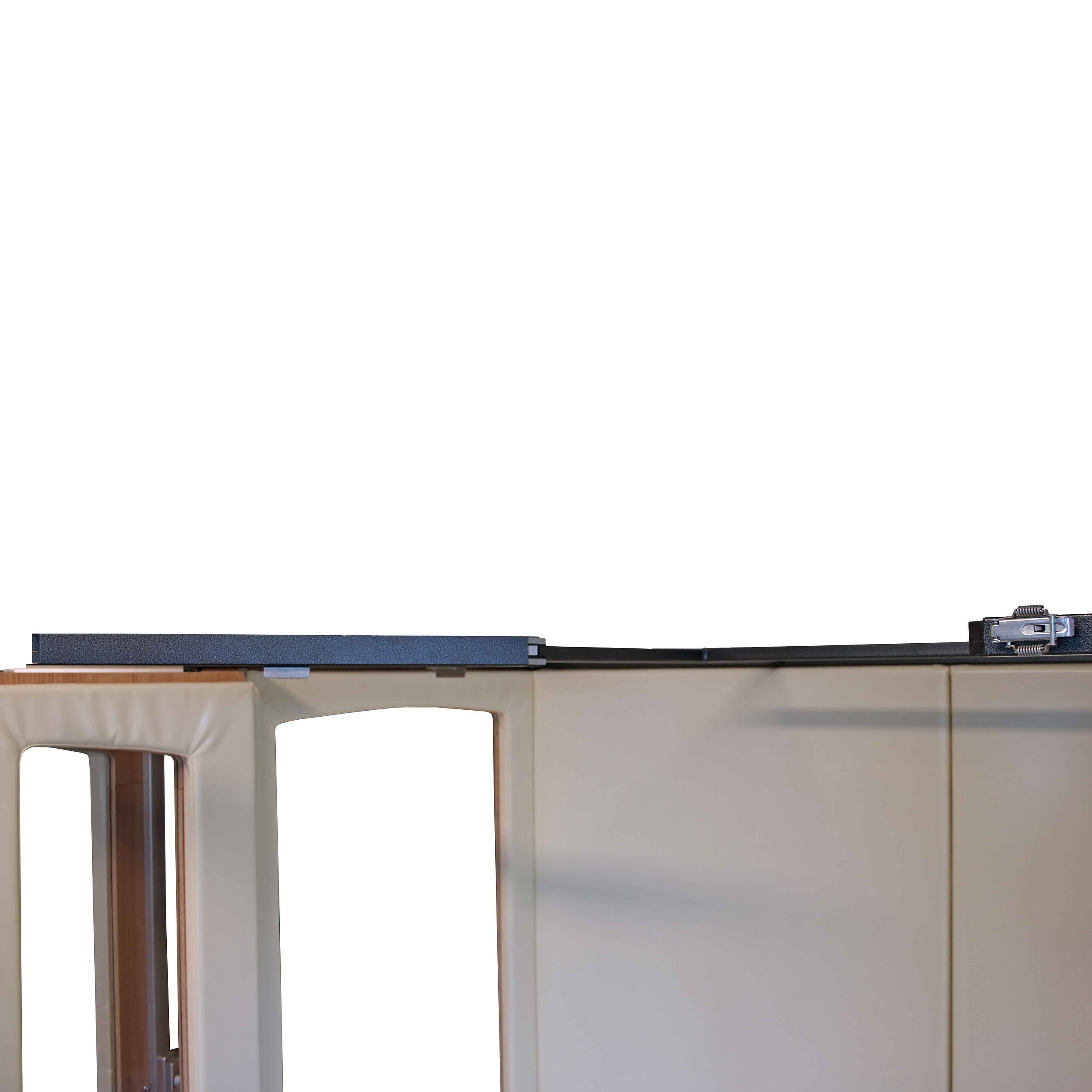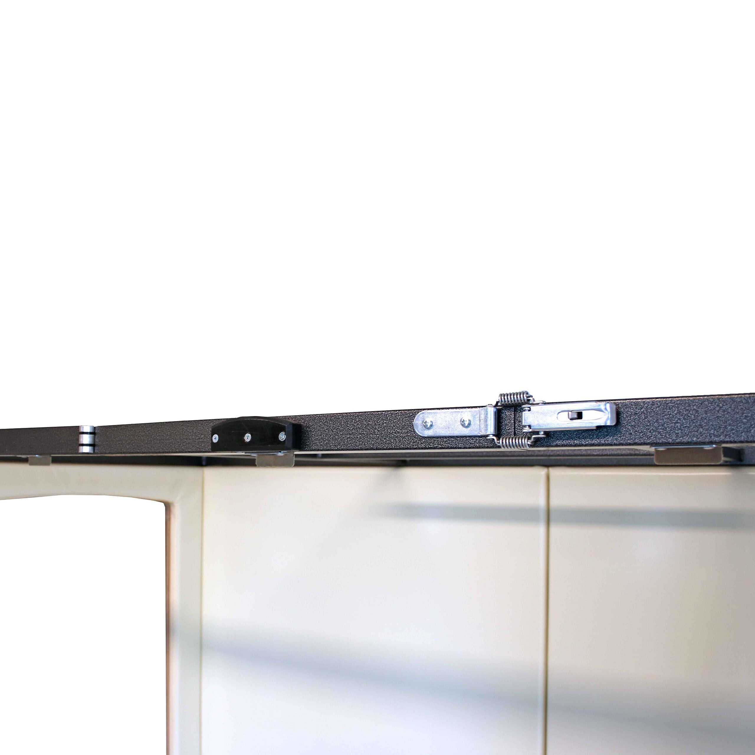 Het bed Tokyo is een zeer solide en sterk bed dat tegen een flinke stoot kan. De venstering van de openslaande deuren is maar liefst 5 mm dik. De onderscheidende factor ten opzichte van het bed Oslo en het bed Helsinki is dat het metalen frame helemaal is doorgetrokken tot en met het dak.
