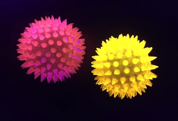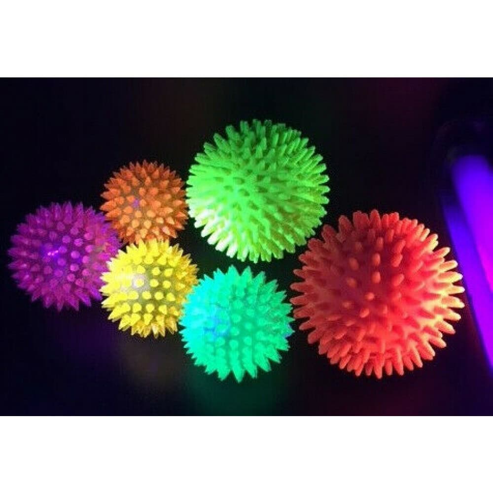 Deze spikey UV-bal is zowel zacht als kneedbaar. Ze gloeien wanneer ze worden blootgesteld aan UV-licht en bieden kinderen zowel visueel en zintuiglijk plezier. Deze bal wordt geleverd in een willekeurige kleur.