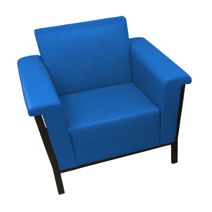 Mooi vormgegeven stoel Stéphanie met metalen frame is voorzien van een uitneembare zitting (ECS systeem), waardoor deze makkelijk te reinigen is. Stoel is bekleedt met bisonyl in de kleur Blauw 16