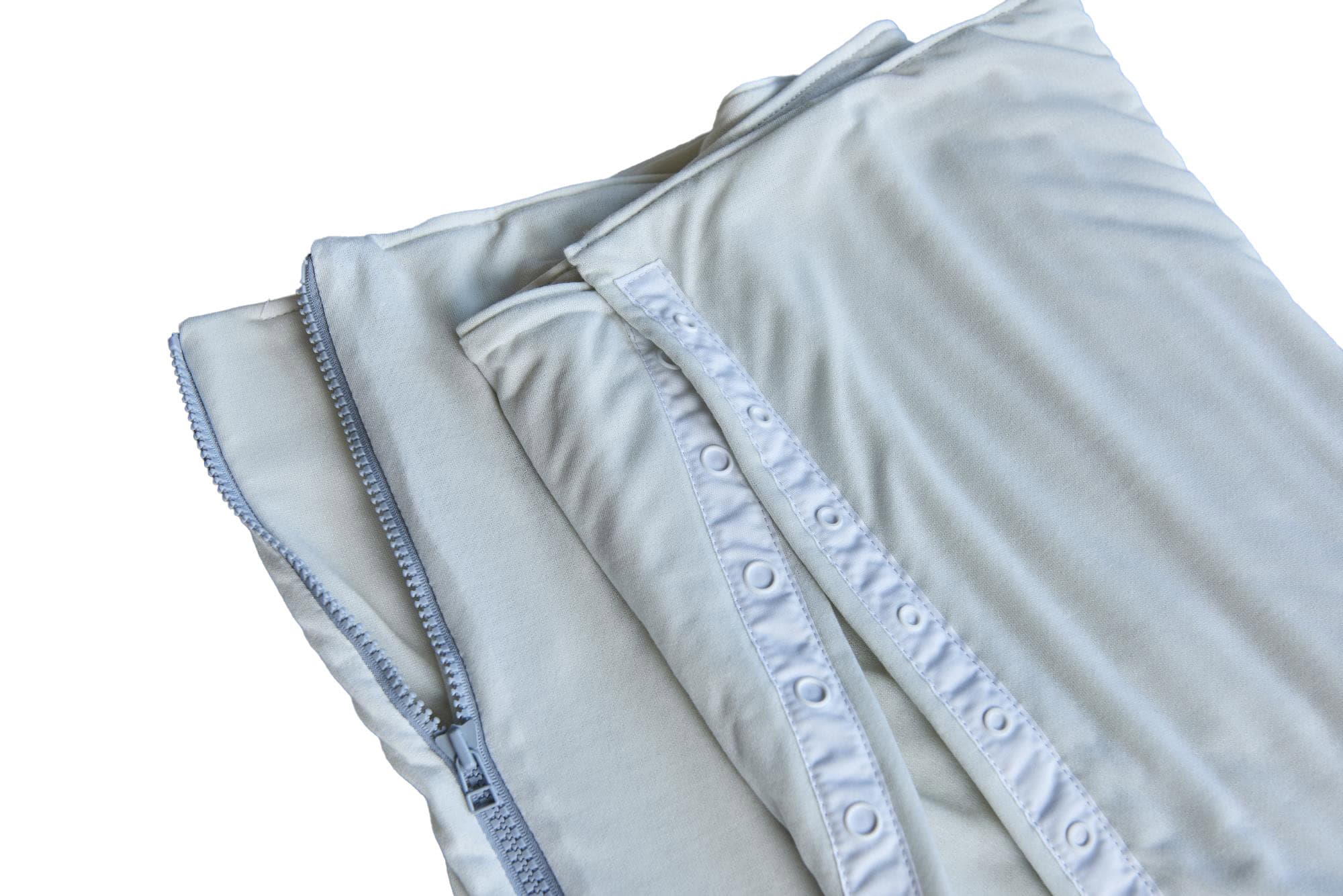 Een verzwaringsartikel dat gevuld is met granulaat volgt perfect de contouren van het lichaam. Het heeft bovendien het voordeel dat je weinig vulvolume nodig hebt om genoeg druk uit te oefenen, zodat het artikel op zich niet echt dik hoeft te zijn. Dit is praktisch in een warme omgeving en makkelijk in onderhoud.