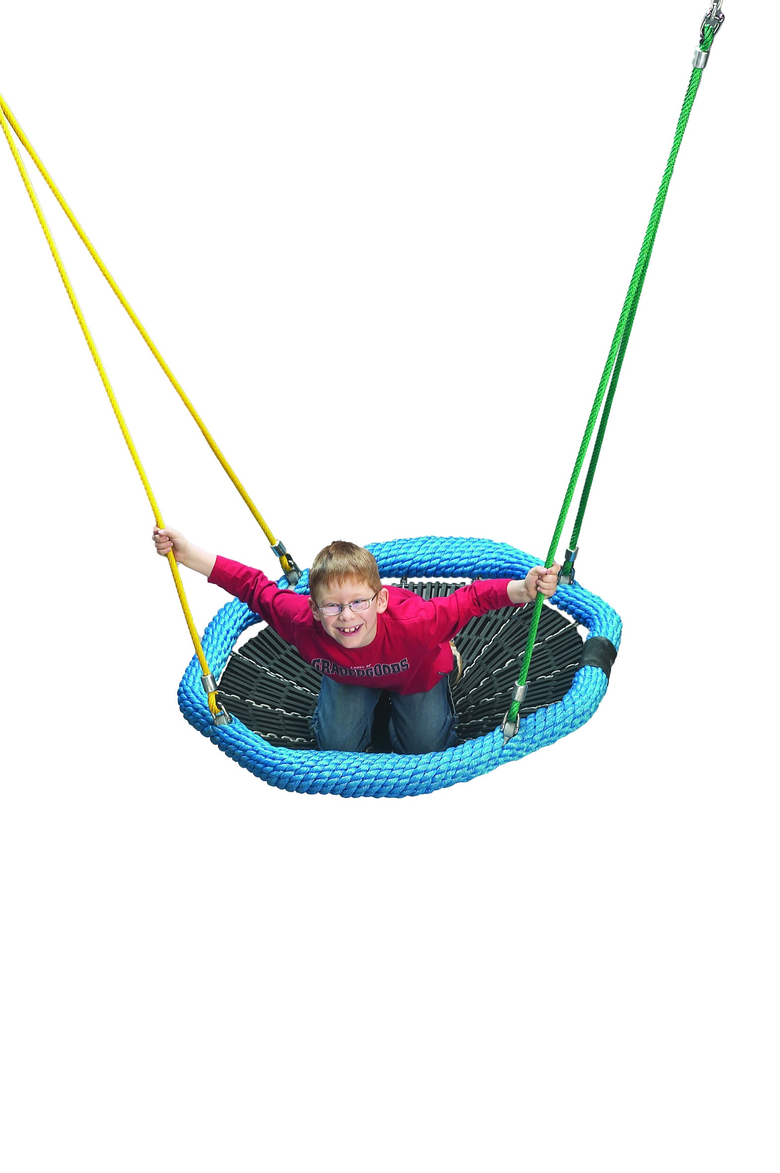 Leuke vogelnest touwschommel voor urenlang speelplezier! Deze schommel met doorsnede ø 100 cm, heeft een tweepunts ophanging en is daardoor alleen geschikt voor in een dubbel schommelframe. De schommel wordt standaard geleverd met ophangkettingen (met rode beschermingshoes), maar exclusief bevestigingssysteem. Om deze schommel op te kunnen hangen, zijn 2 kardan veiligheidsophangingen nodig (te bestellen met art. BE04703, let op: 2 stuks benodigd). De schommel heeft een draagvermogen van maximaal 325 kg.